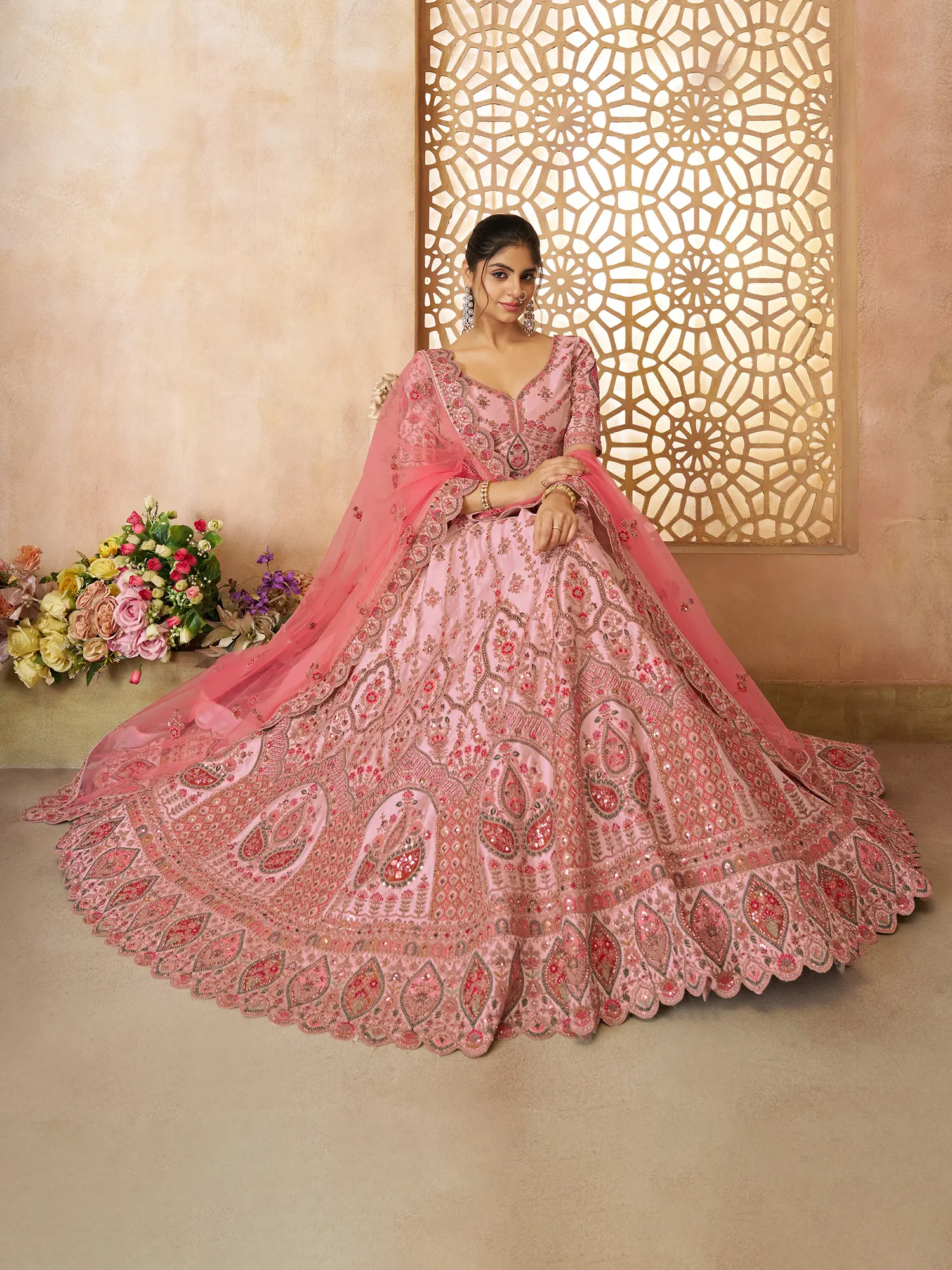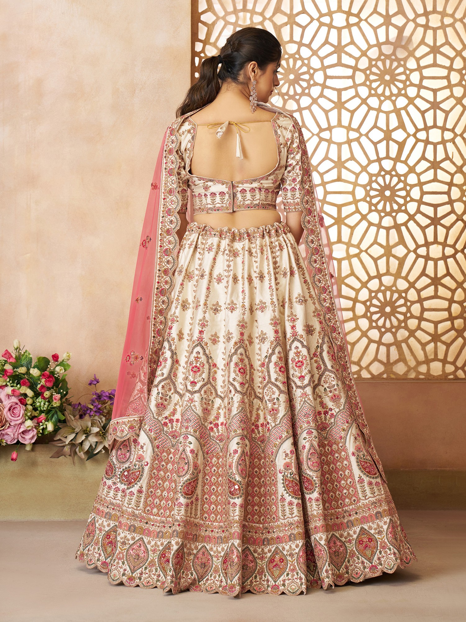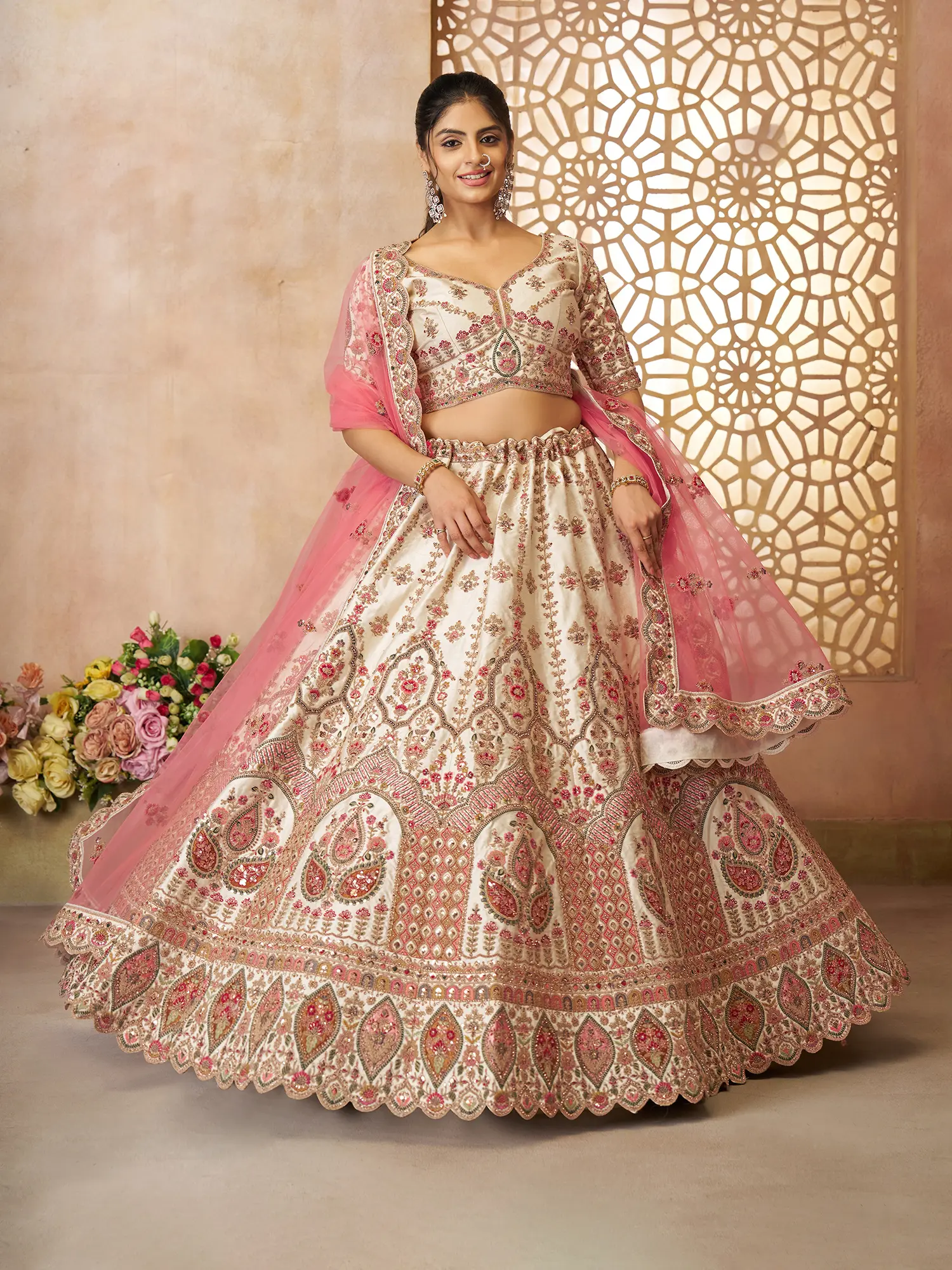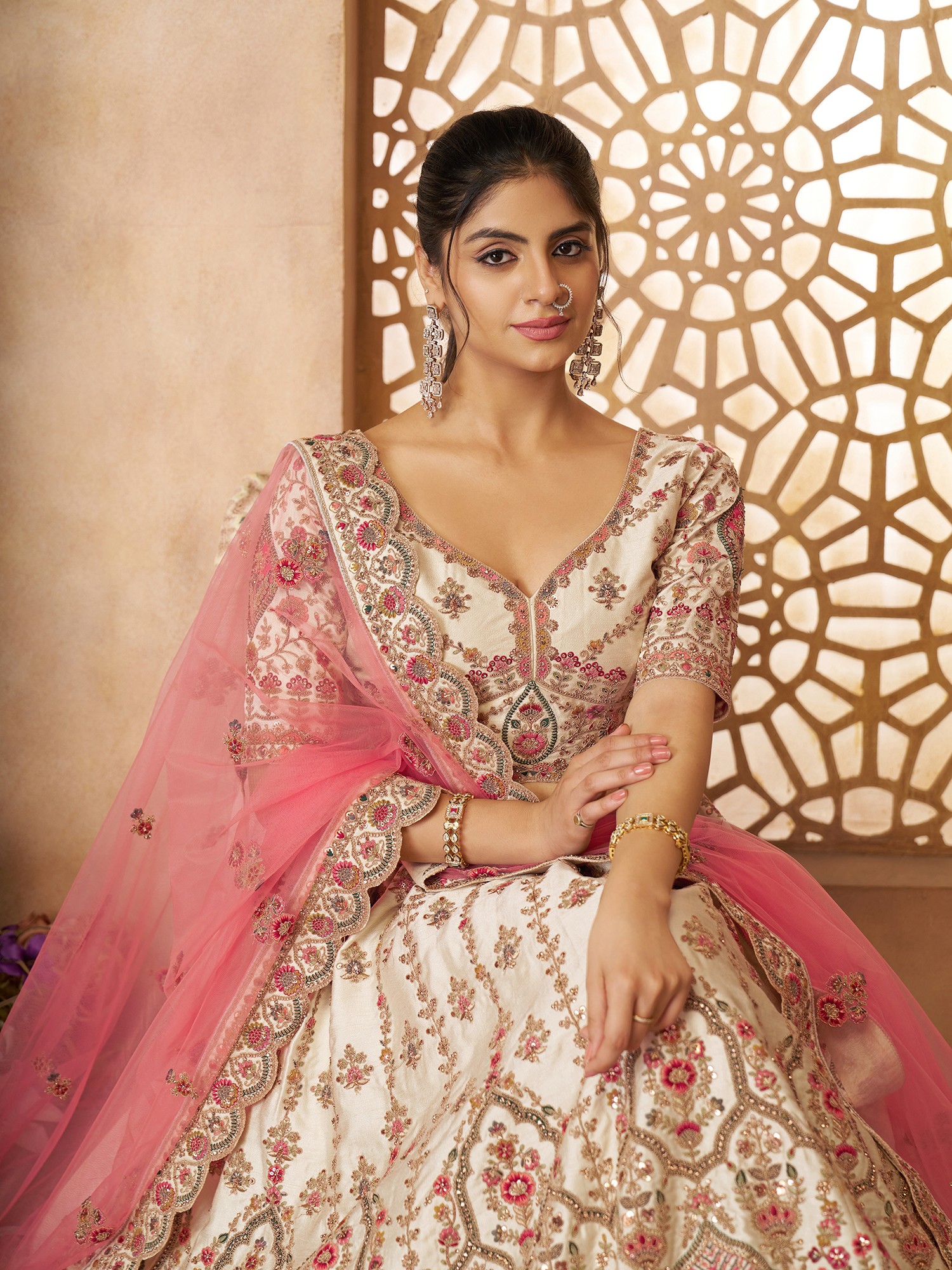 Floral Sequins And Embroidery Work Pure Cosmos Jacquard Elegant Lehenga Choli With Dupatta