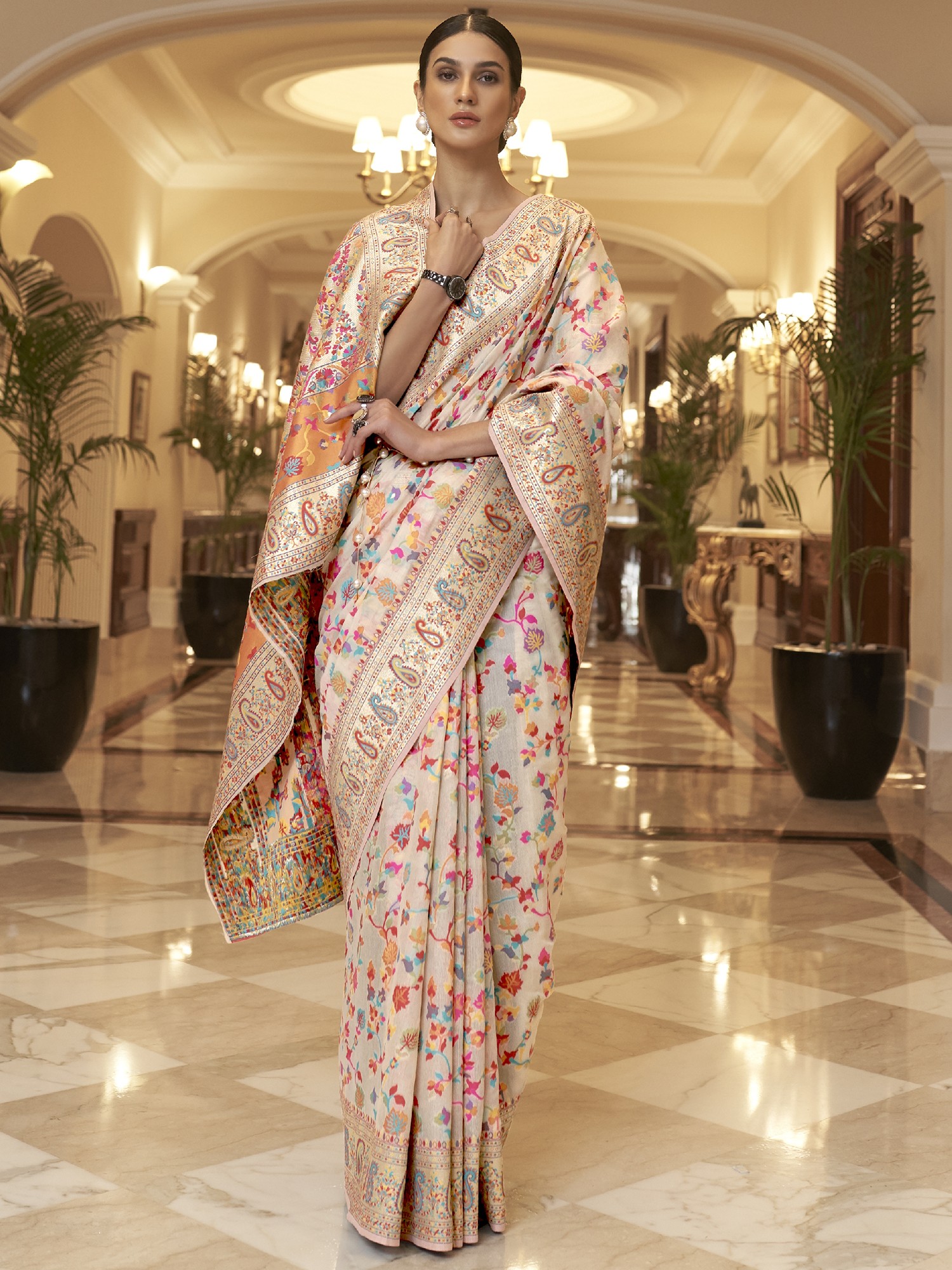 Authentic Woolen Jamawar Stole with Woven Paisleys and Floral Motifs | Expertly Crafted in Amritsar