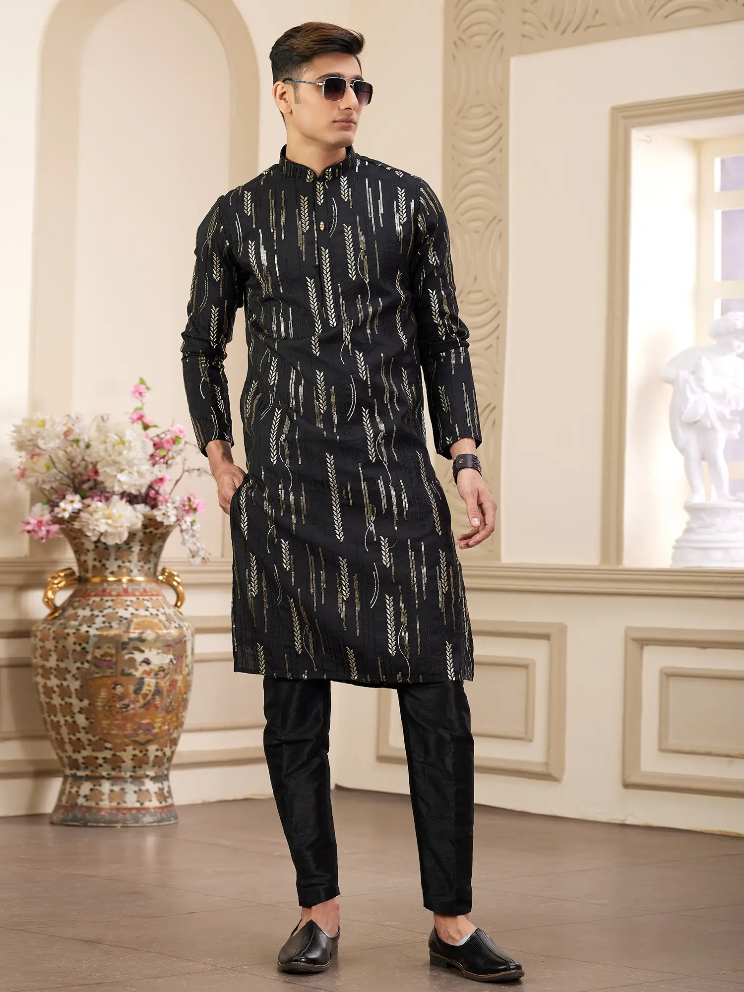 Multicolor Floral Printed Pure Cotton Kurta Pajama Set With Gota Patti on Neck