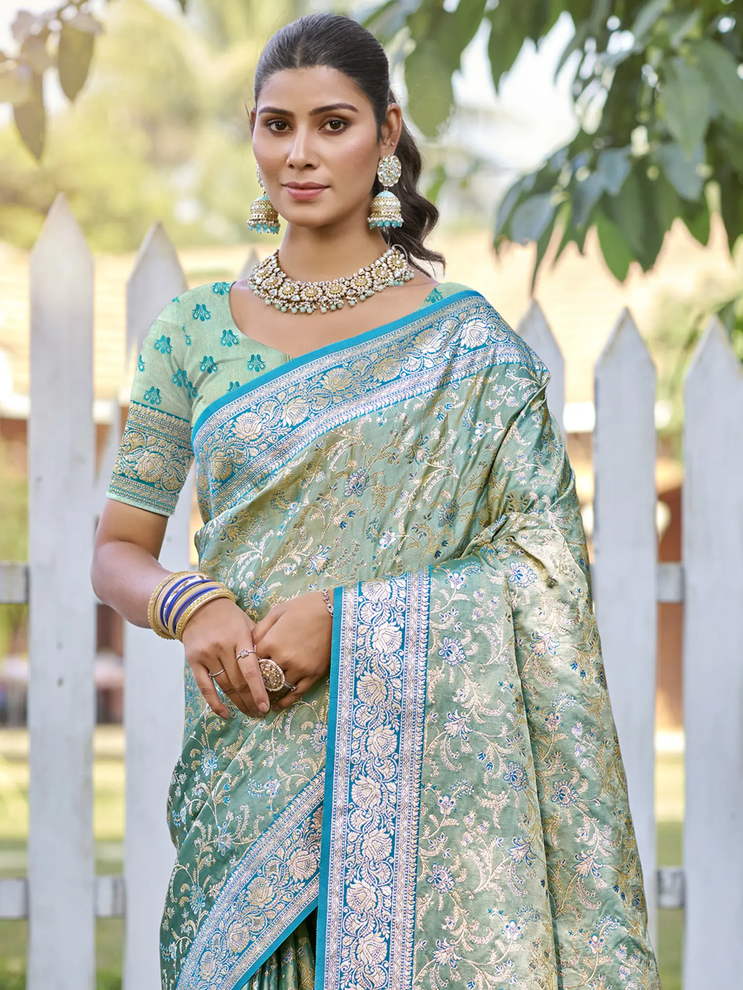 Sequins Weaving Silk Saree with Digital Print Blouse