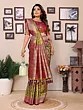 The charm of this saree lies in its meticulously woven floral motifs. These intricate patterns, rendered in a harmonious blend of colors, add a touch of timeless beauty and traditional artistry. Cascading across the length of the saree, the delicate floral designs create a visual symphony, celebrating the richness of Indian textiles. The saree is further accentuated by a striking contrast border, rendered in a deep, captivating hue that frames the opulent fabric. This border is adorned with detailed traditional motifs, showcasing the weaver's skill and the heritage of the craft.