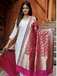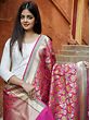 Indulge in the grandeur of our Floral Multicolor Woven Vine Motif Brocaded Banarasi Dupatta. Crafted in the heart of Banaras, India, this dupatta features a timeless vine motif design. Rooted in ancient Indian artistry, this design has evolved through the ages and still resonates with modern fashion trends. The dupatta's broad Zari border adds a touch of regal splendor, and the multicolor palette enhances its versatility. Each thread is woven with precision by skilled artisans, making this dupatta a precious embodiment of Indian heritage and a must-have for your collection.