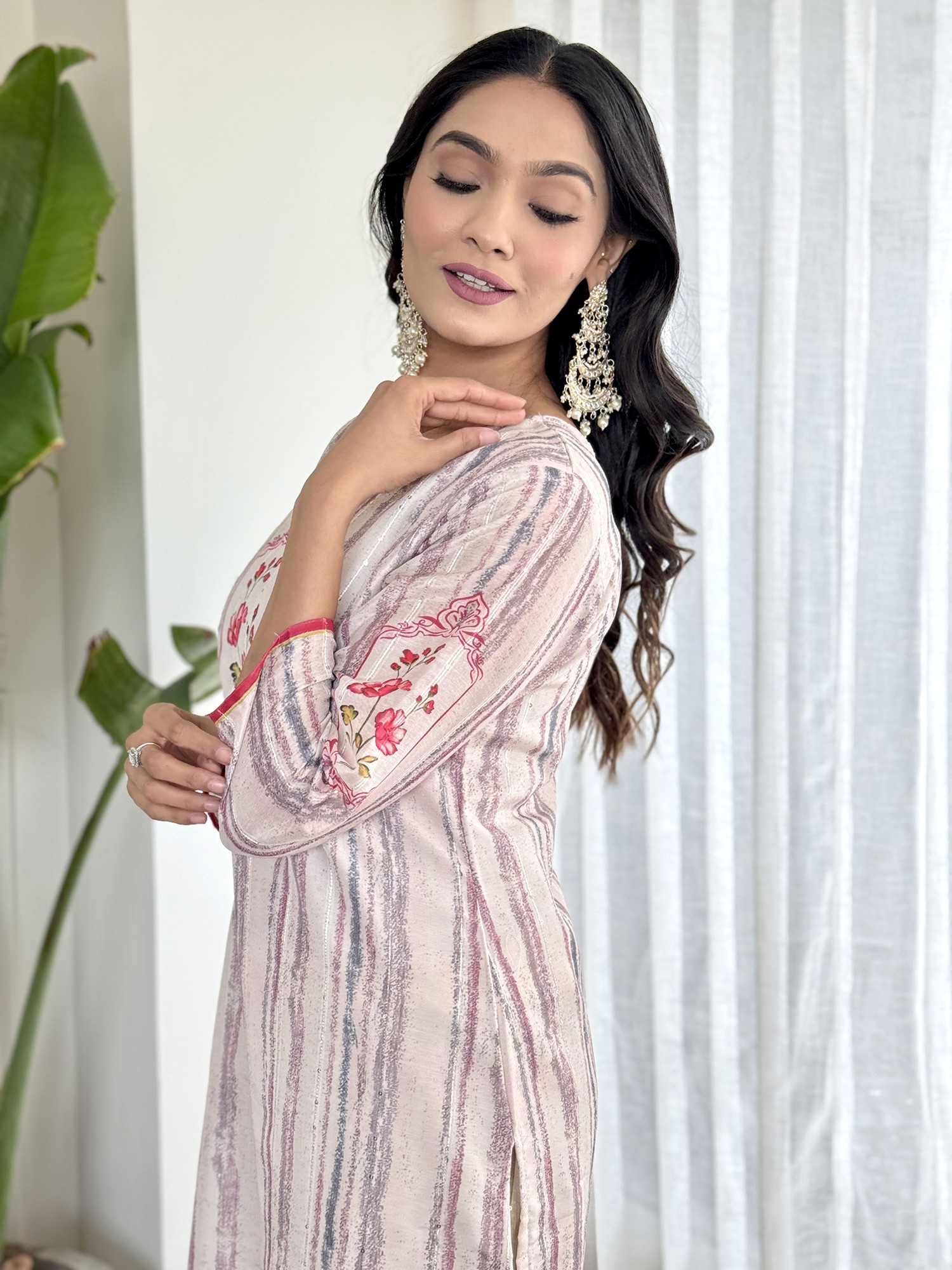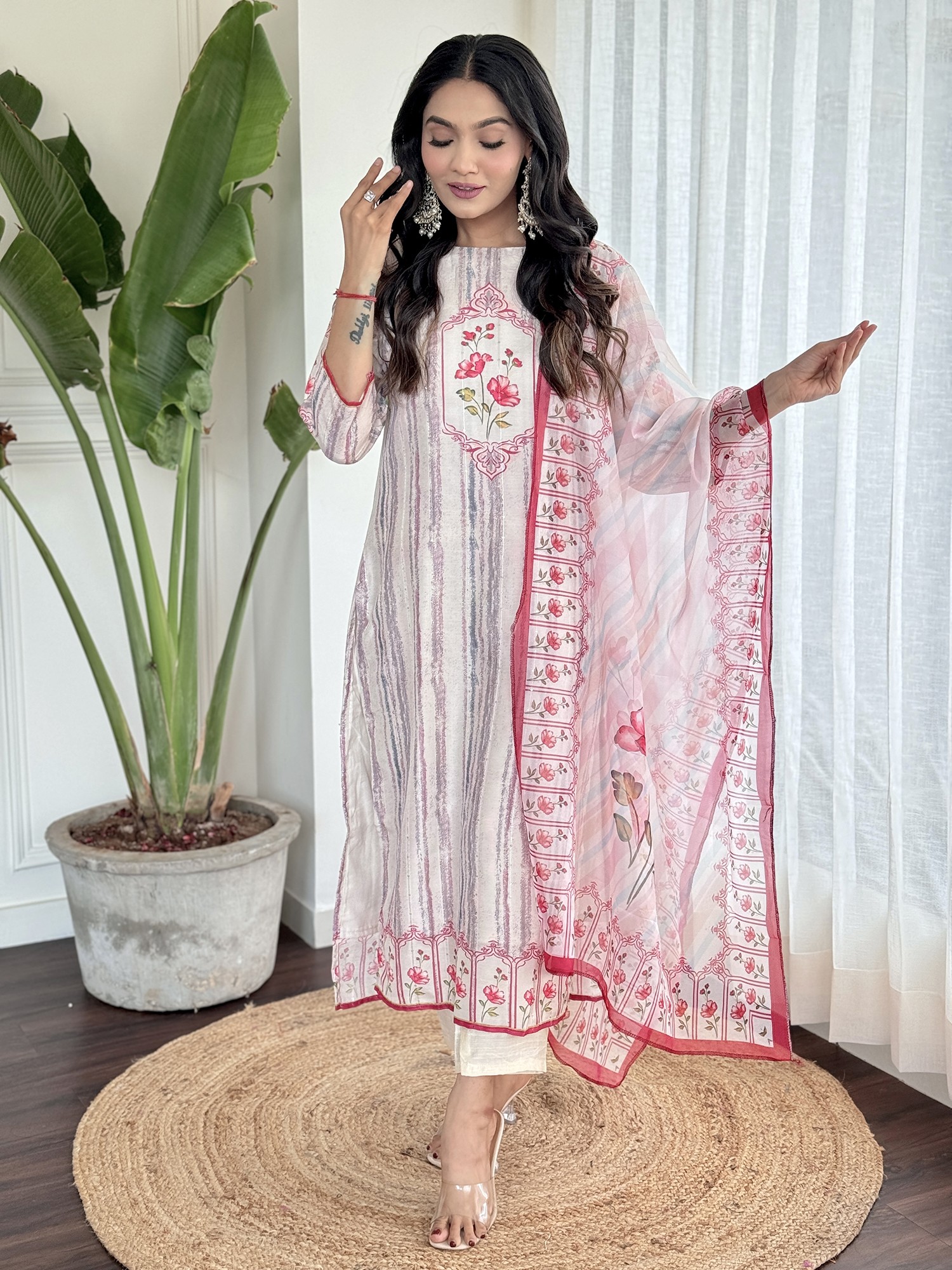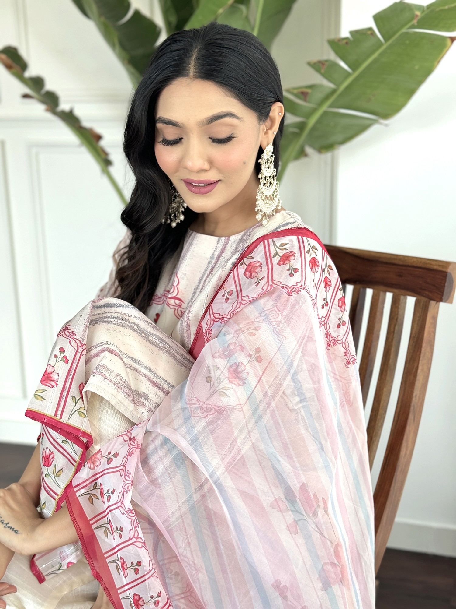 Afterglow Floral Zari Woven Organza Kameez with Cotton Salwar and Dupatta