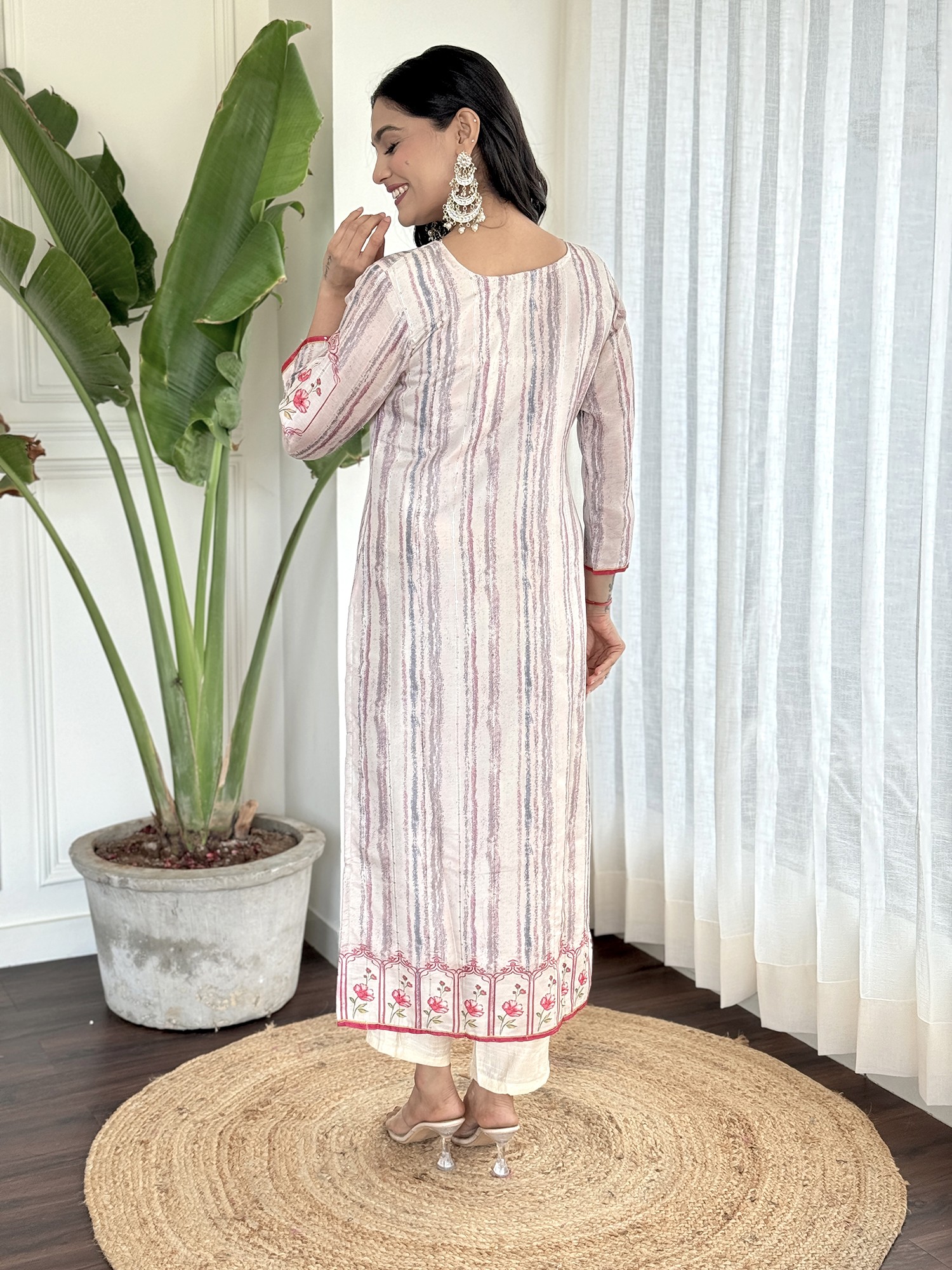 Cotton Salwar Kameez with Bundi Motif Floral Weave on The Body and Straight Style Pant