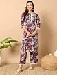 This set is more than just comfortable clothing; it's a work of art. The all-over floral print adds a touch of nature-inspired elegance, while the delicate lace detailing provides a feminine and sophisticated touch. The intricate lace embellishments frame the neckline and sleeves of the kurta, adding a subtle yet eye-catching element. Each flower in the print is carefully placed to create a visually stunning design that is both captivating and refined. The coordinated design theme is carried on to the bottom as well, creating a seamless and elegant look.