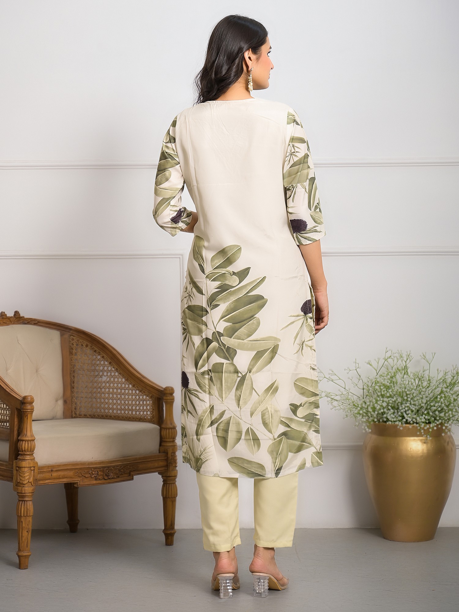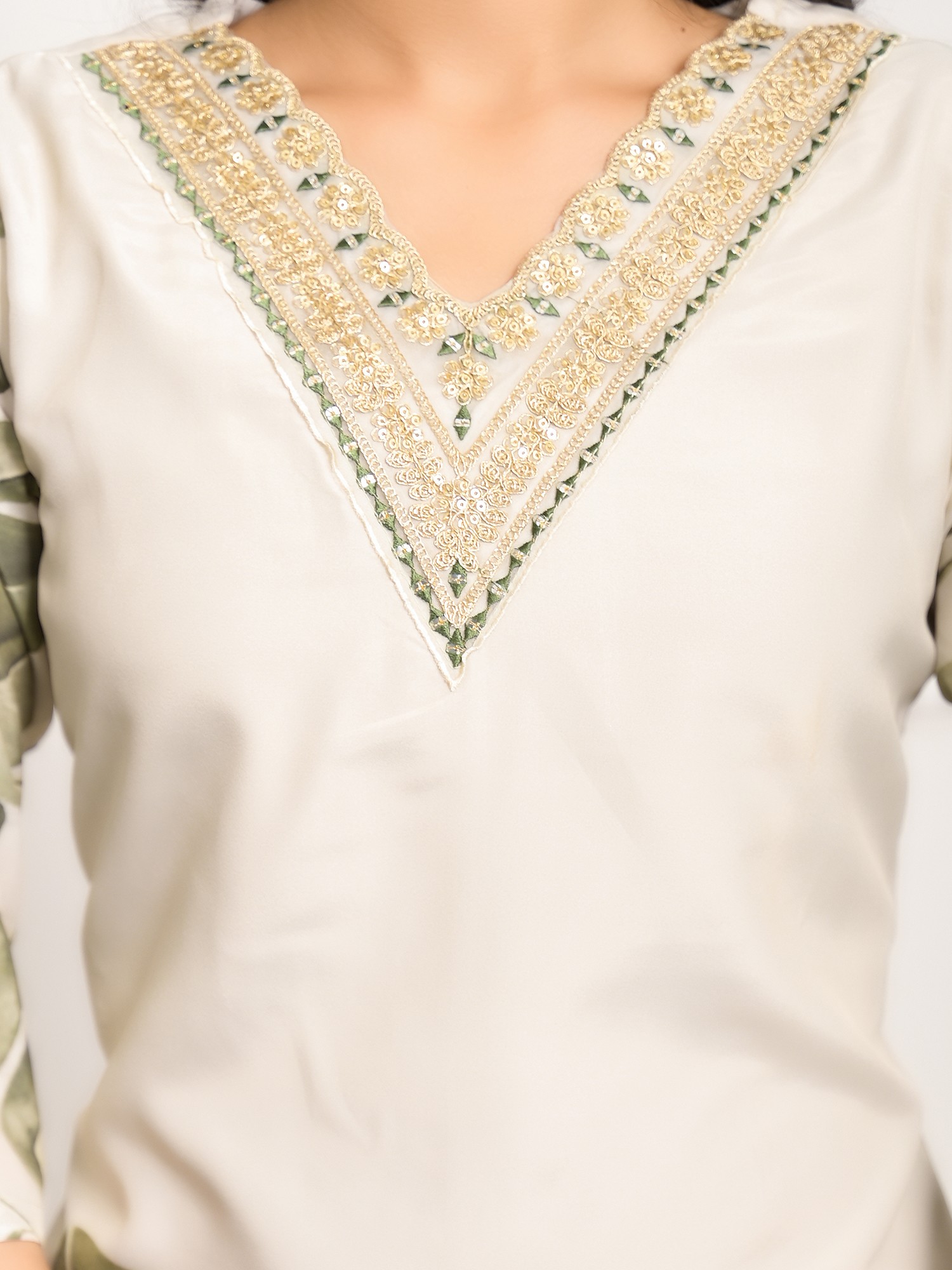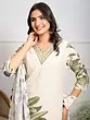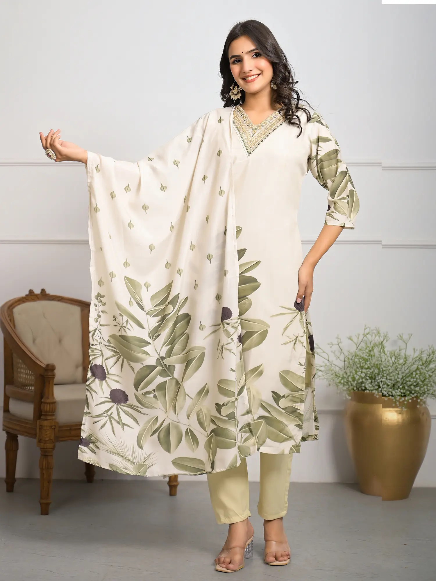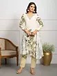 Beige Designer Churidar Kameez Suit with All-Over Floral Embroidery in Self and Patch Border