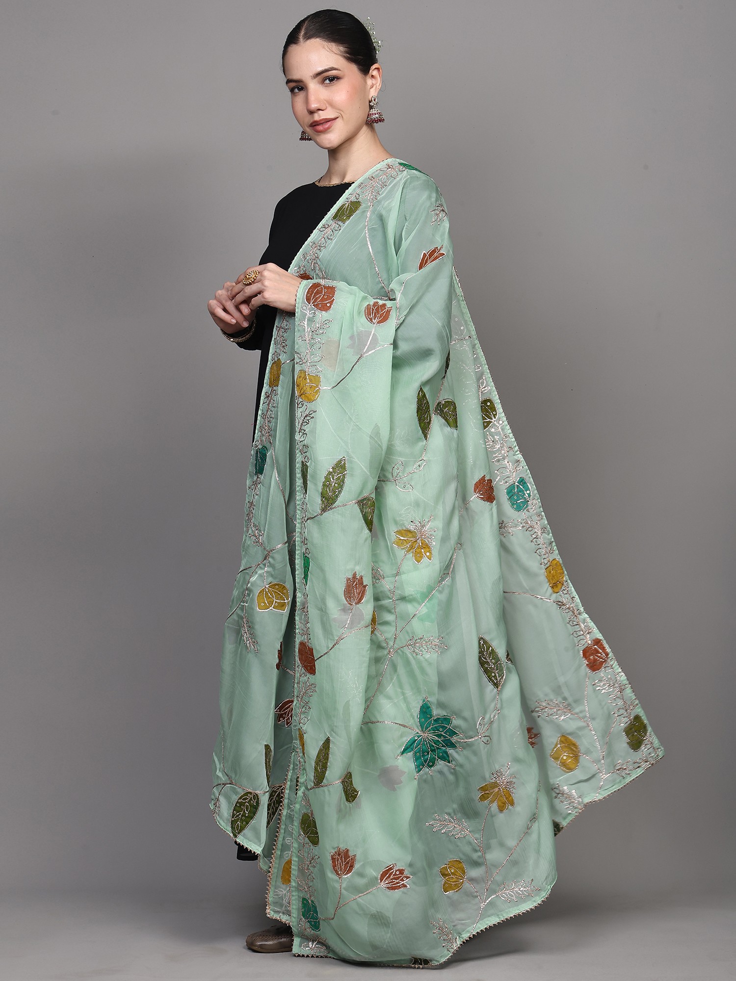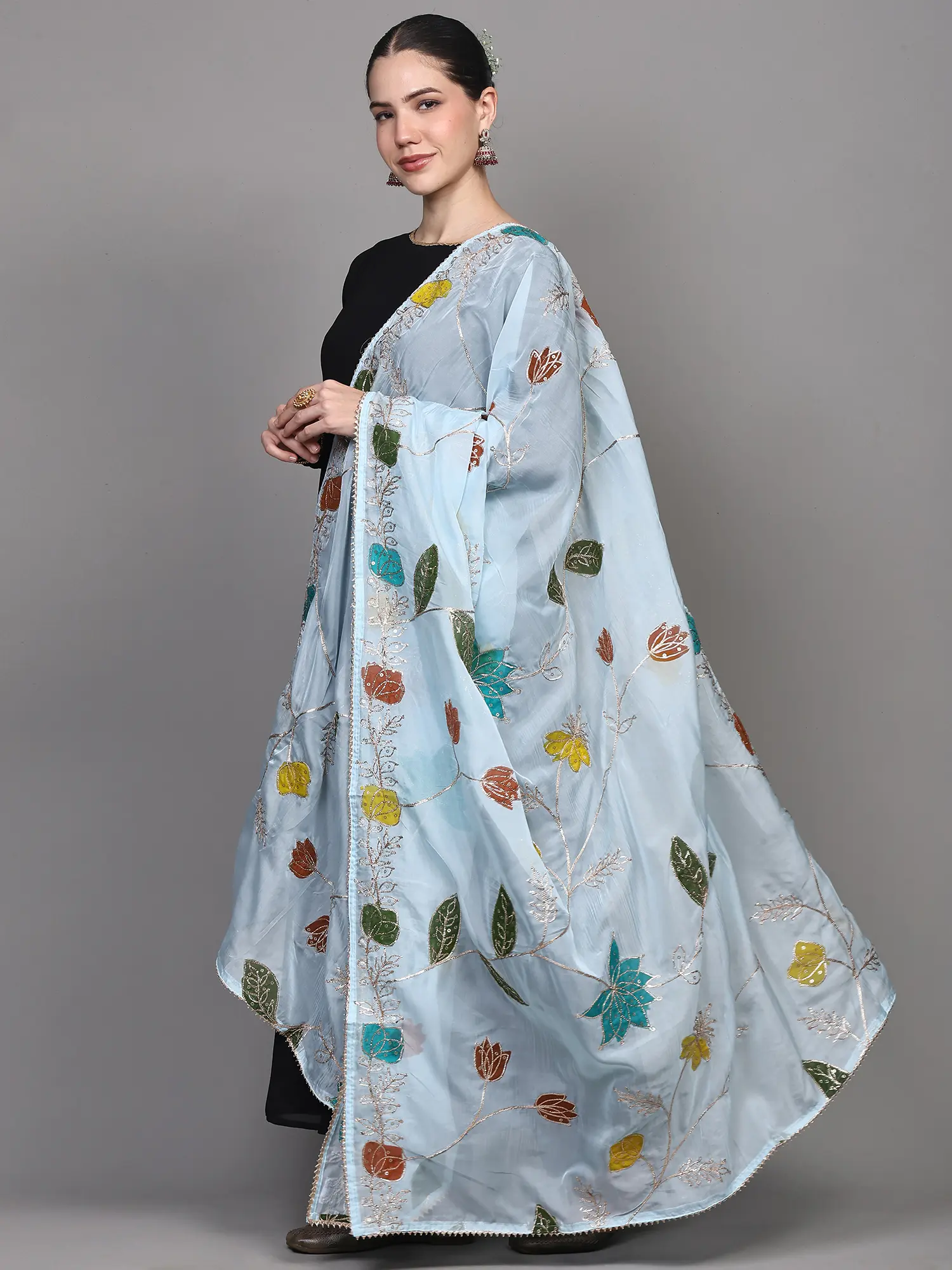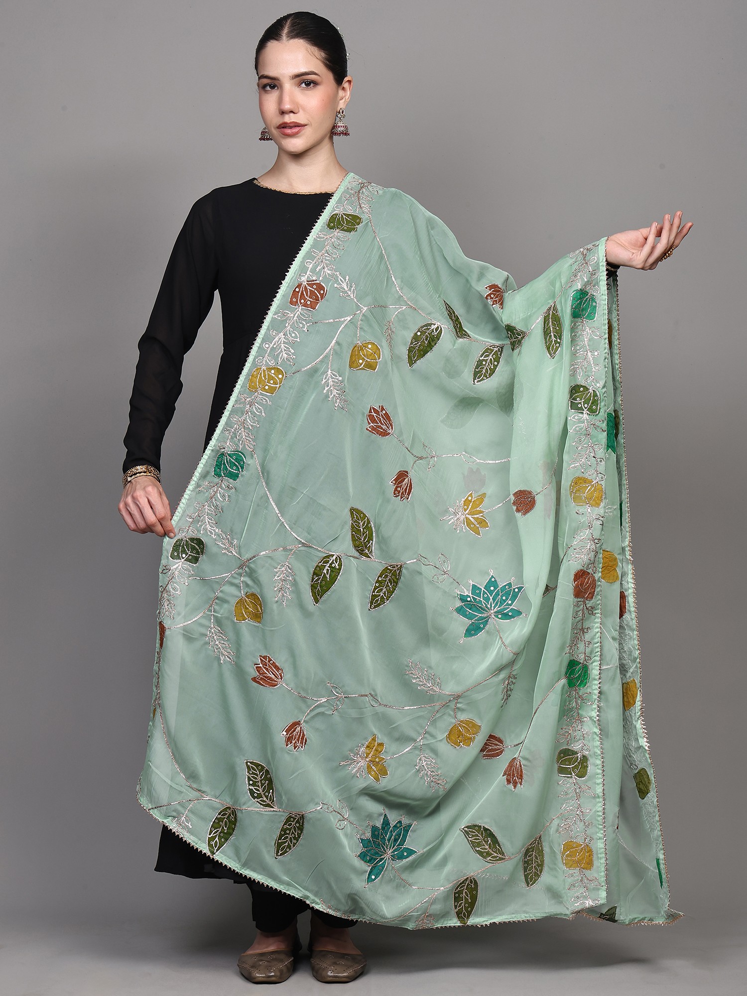 Multicolor Floral Printed Dupatta with Bead-Mirror work and Golden Lace Border from Amritsar
