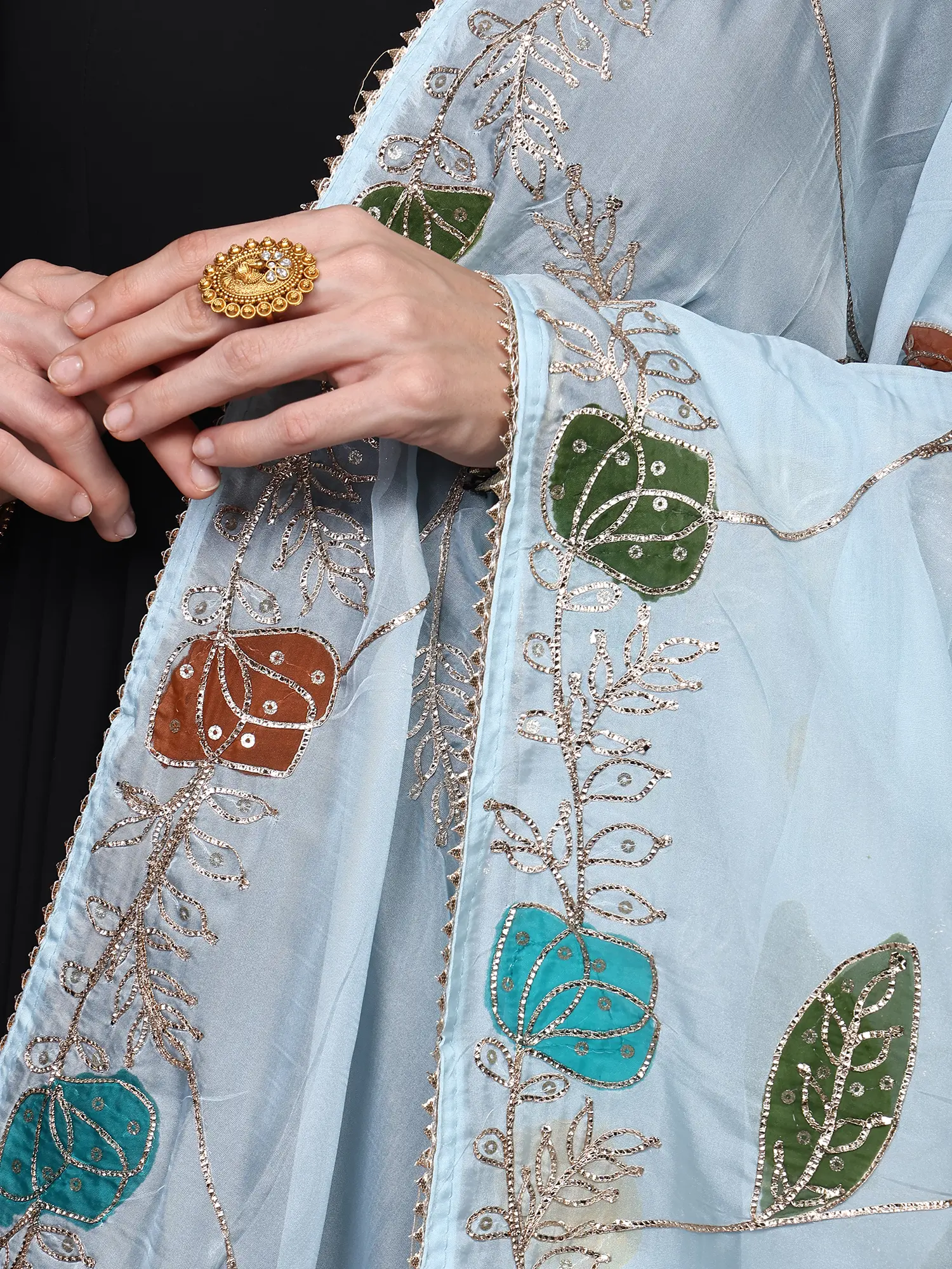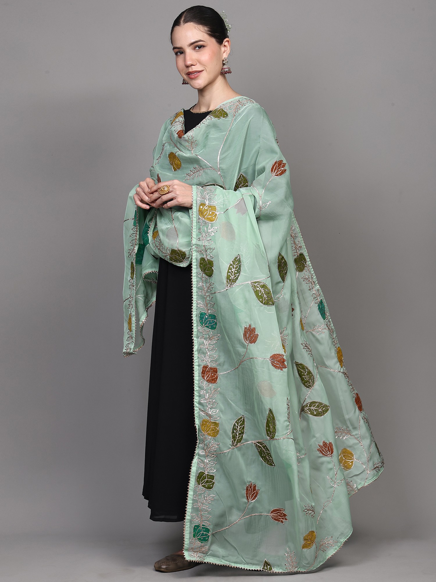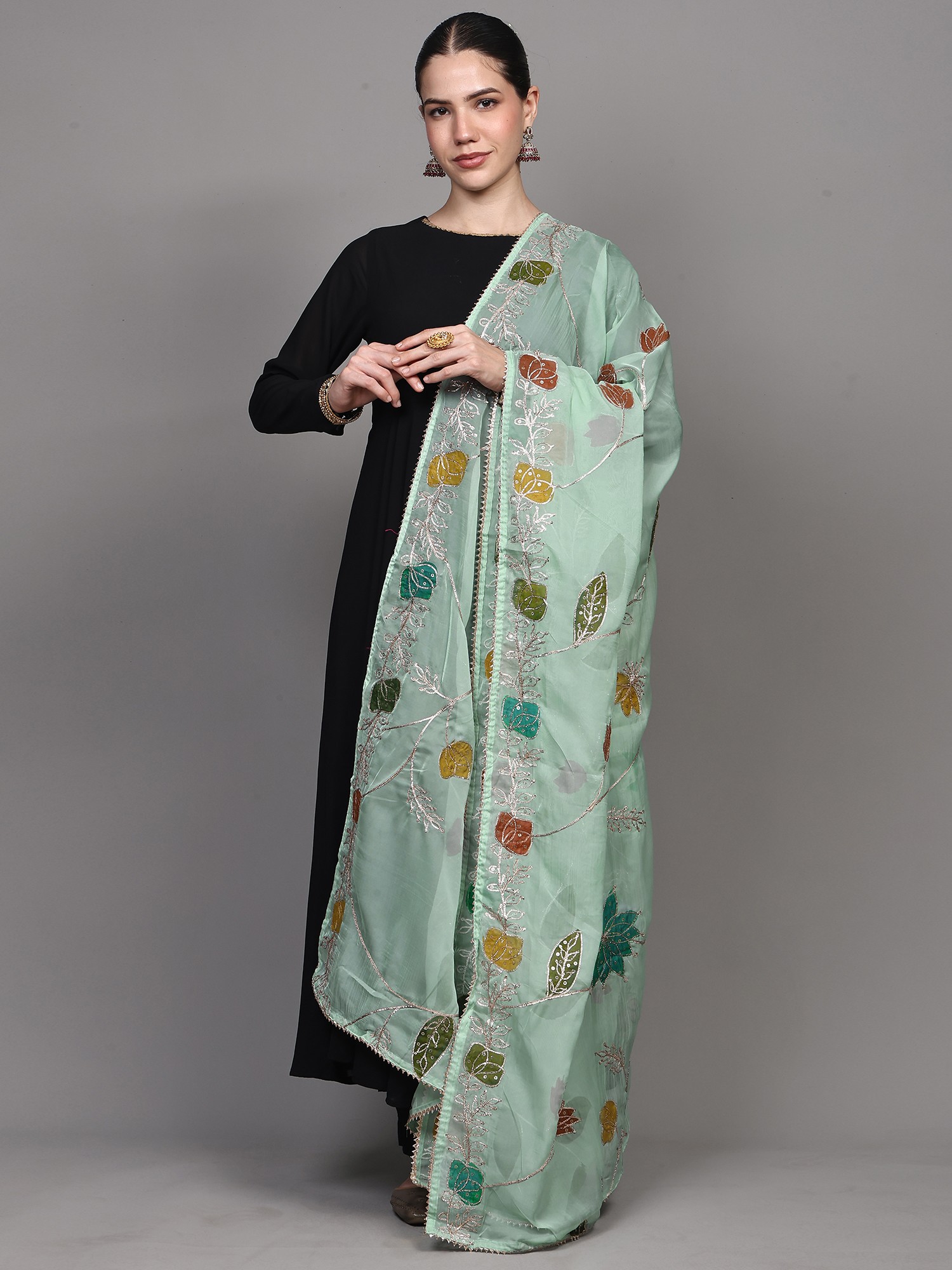 Multicolor Floral Printed Dupatta with Bead-Mirror work and Golden Lace Border from Amritsar