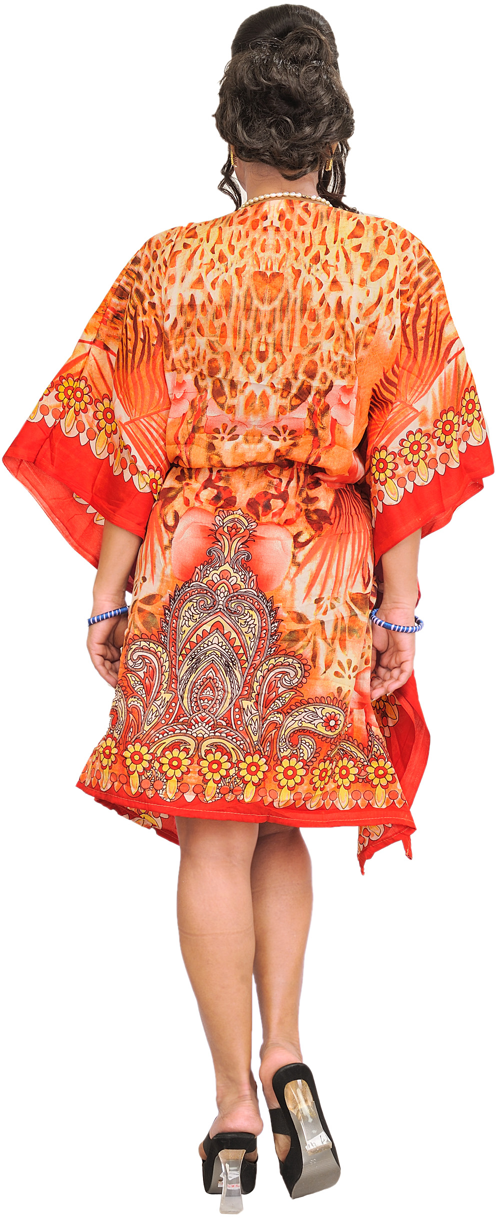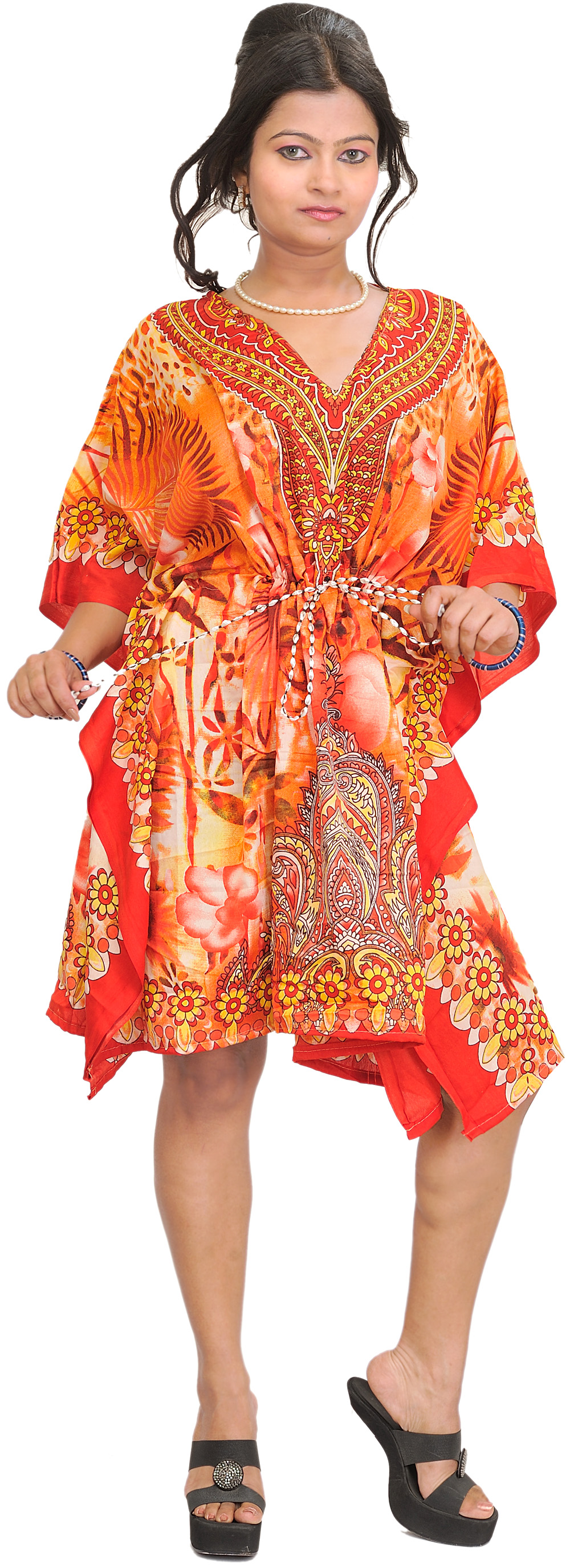 This “Short Kaftan” with Dori at Waist, drenched in the dreamy beauty of blossoming flowers, is a mesmerising tribute to the splendour of nature. This kaftan, which is made of high-quality polyester, has a whimsical and charming vibe. Perfect for lounging by the poolside or enjoying a leisurely stroll along the beach, its lightweight construction guarantees comfort without sacrificing style. Whether you are looking to add some floral fantasy to your wardrobe or are just enjoying the warmth of summer, this kaftan is a flexible piece that perfectly captures grace and class.