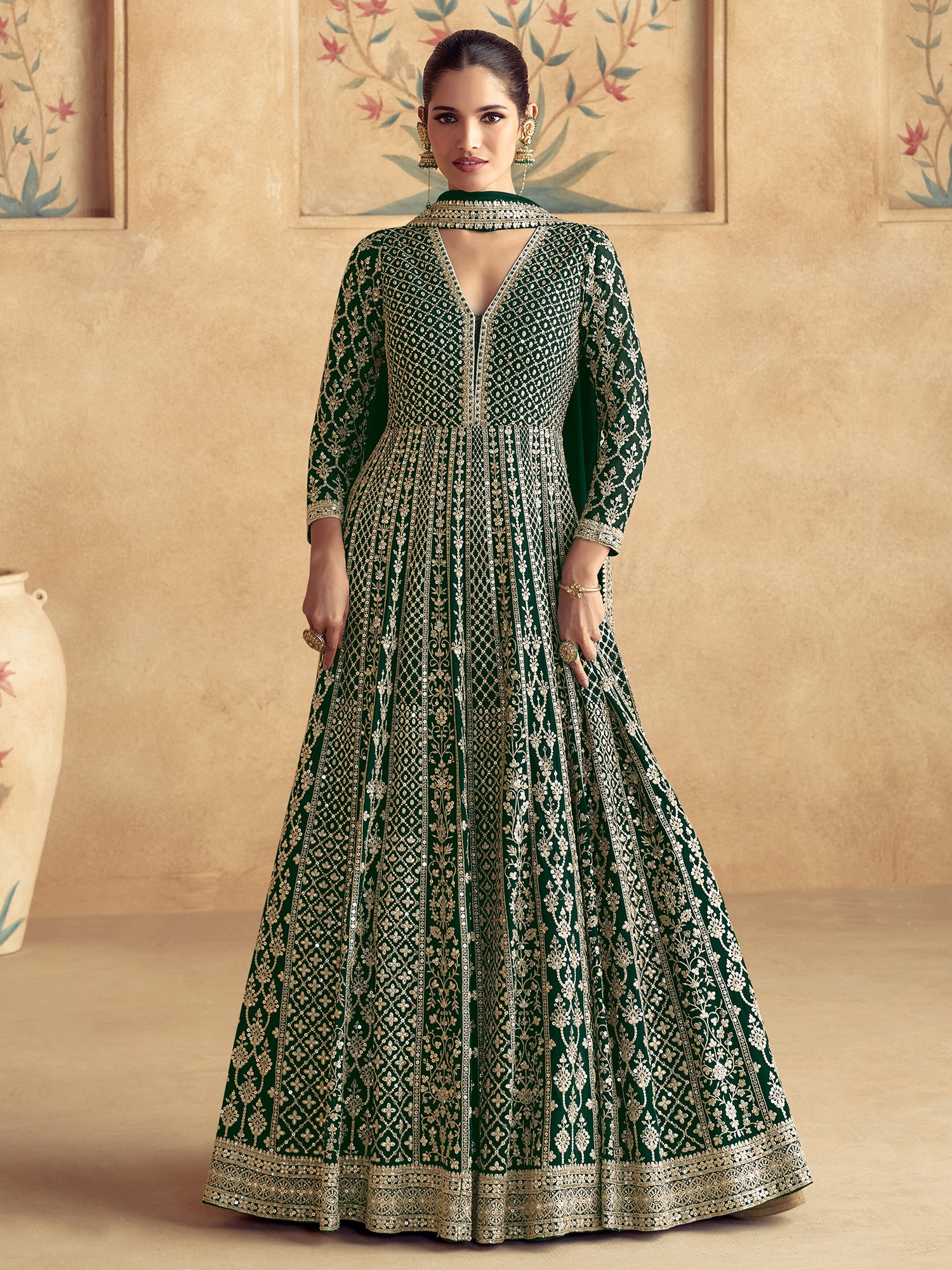 Chinon Floral Print Thread Embroidery Work Attractive Anarkali Gown For Festive Occasion