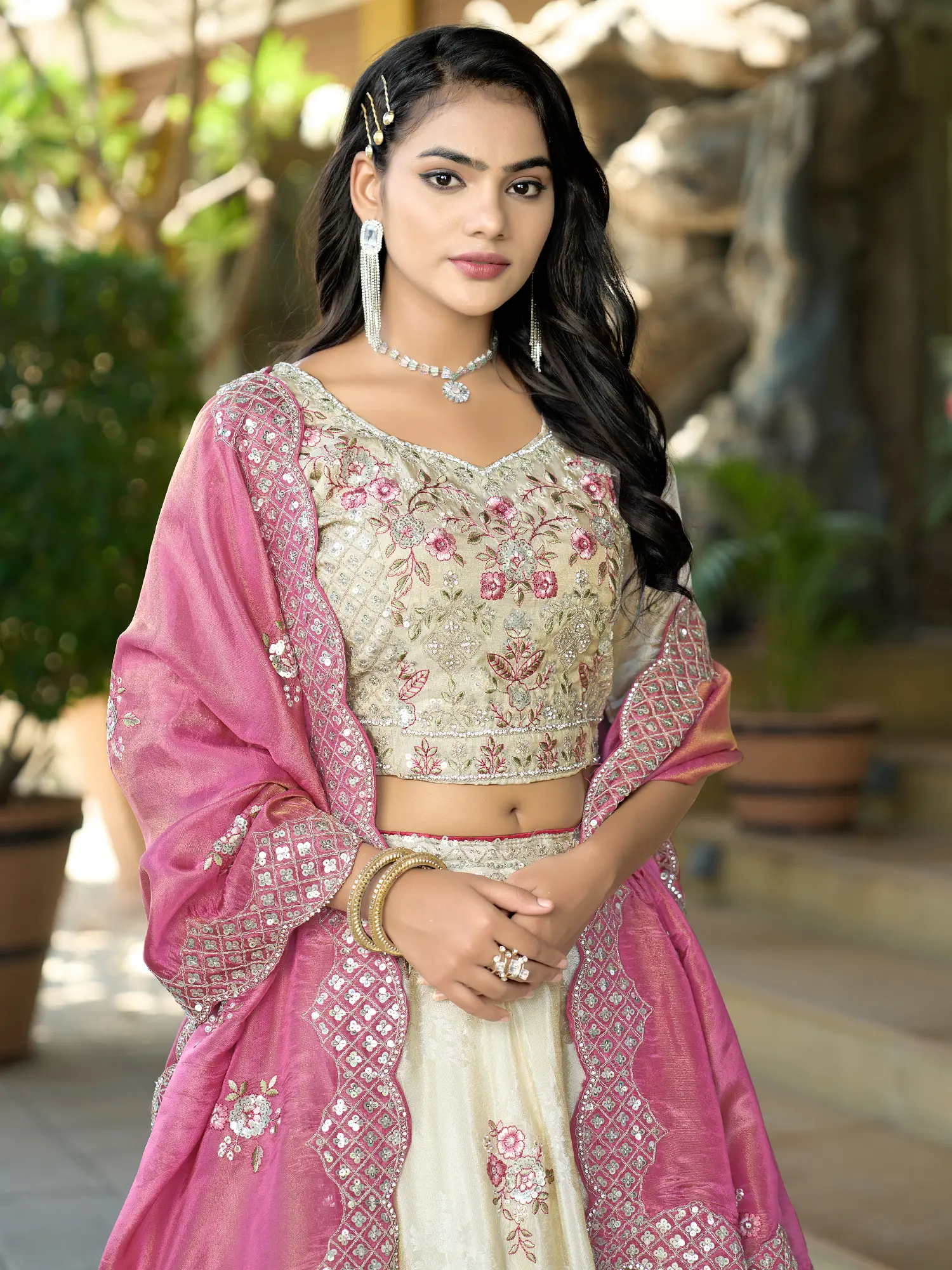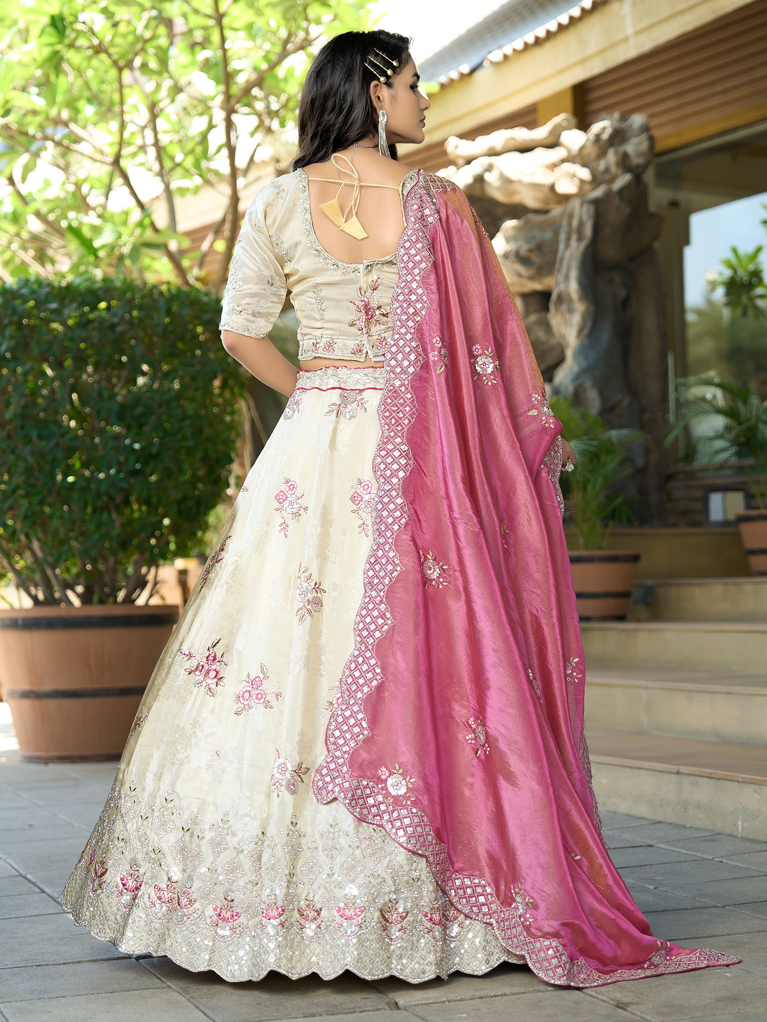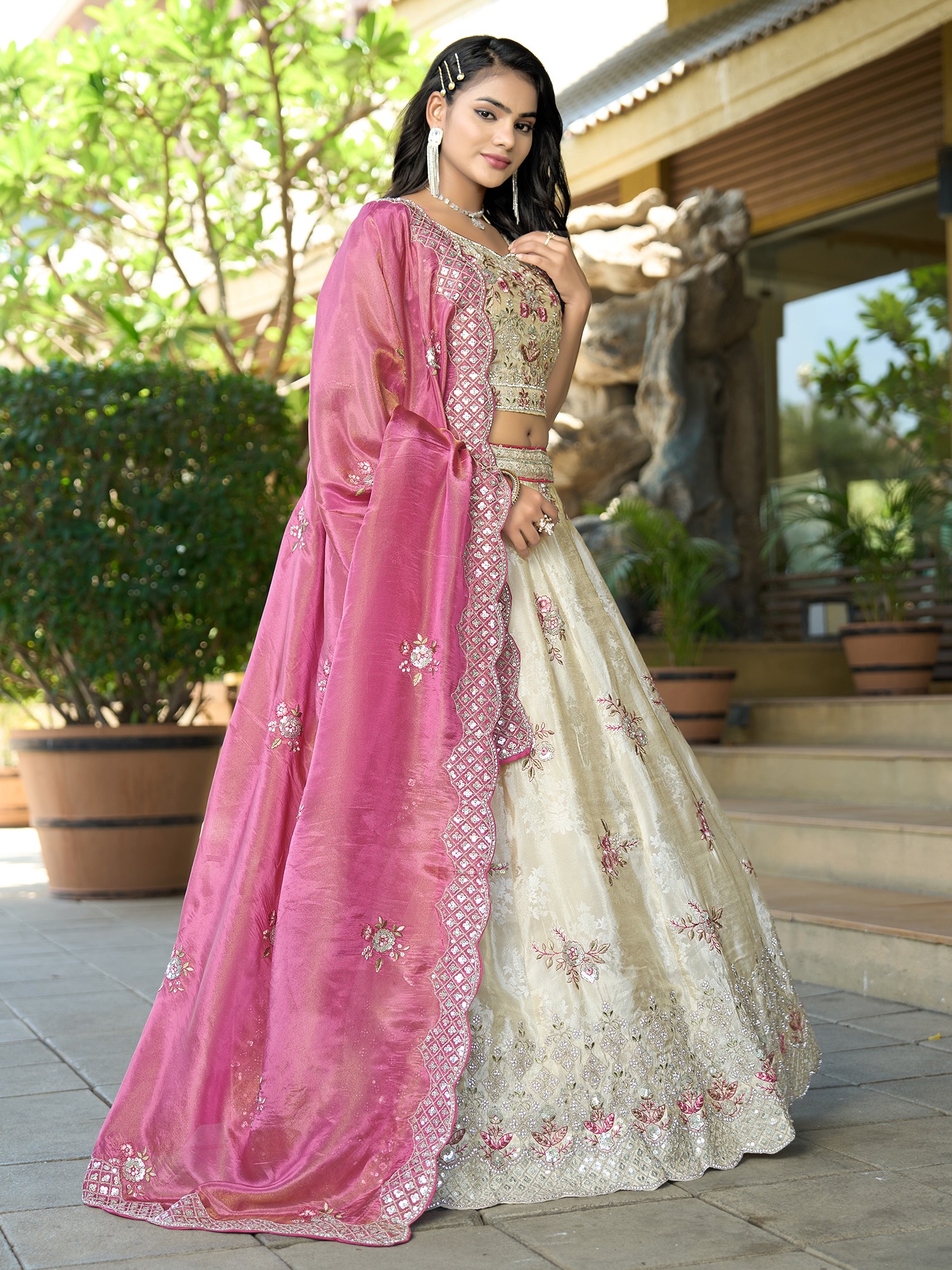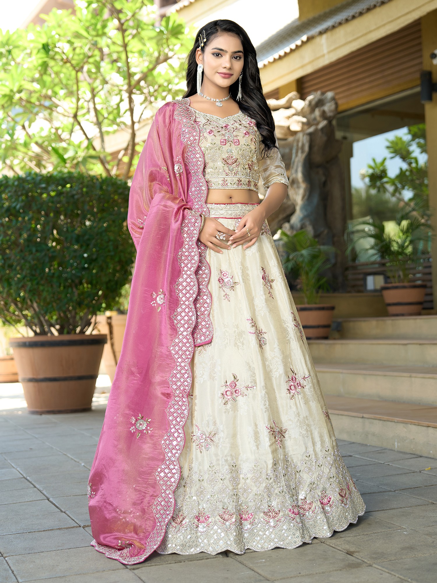 Georgette Lehenga Choli With Floral Sequins Embroidery With Matching Dupatta