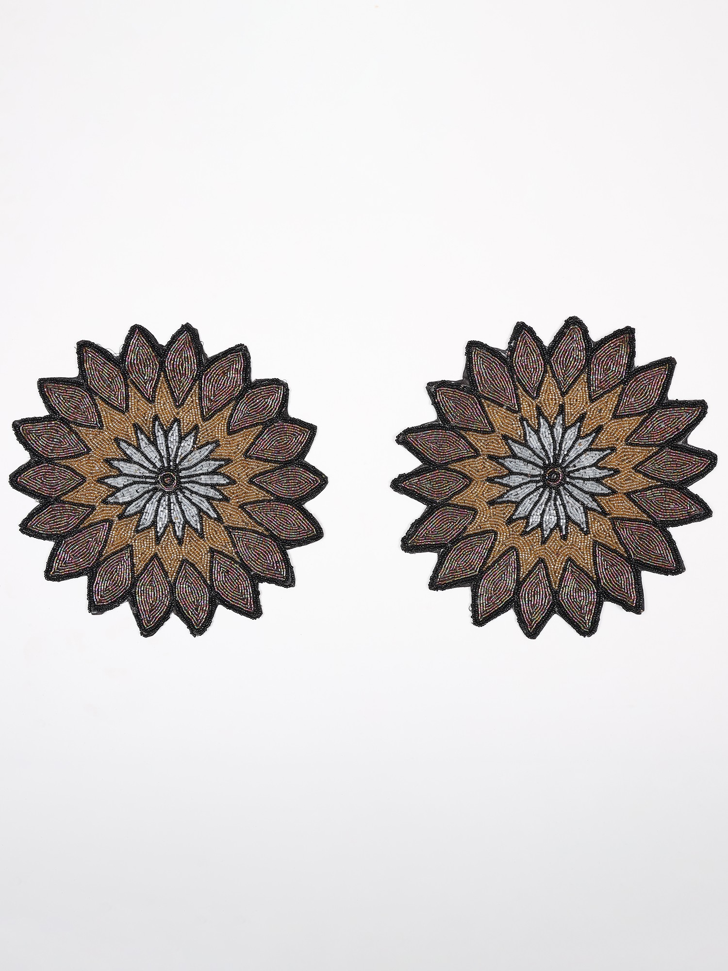 Golden Zardozi Hindu Swastik Patch with Stone Work