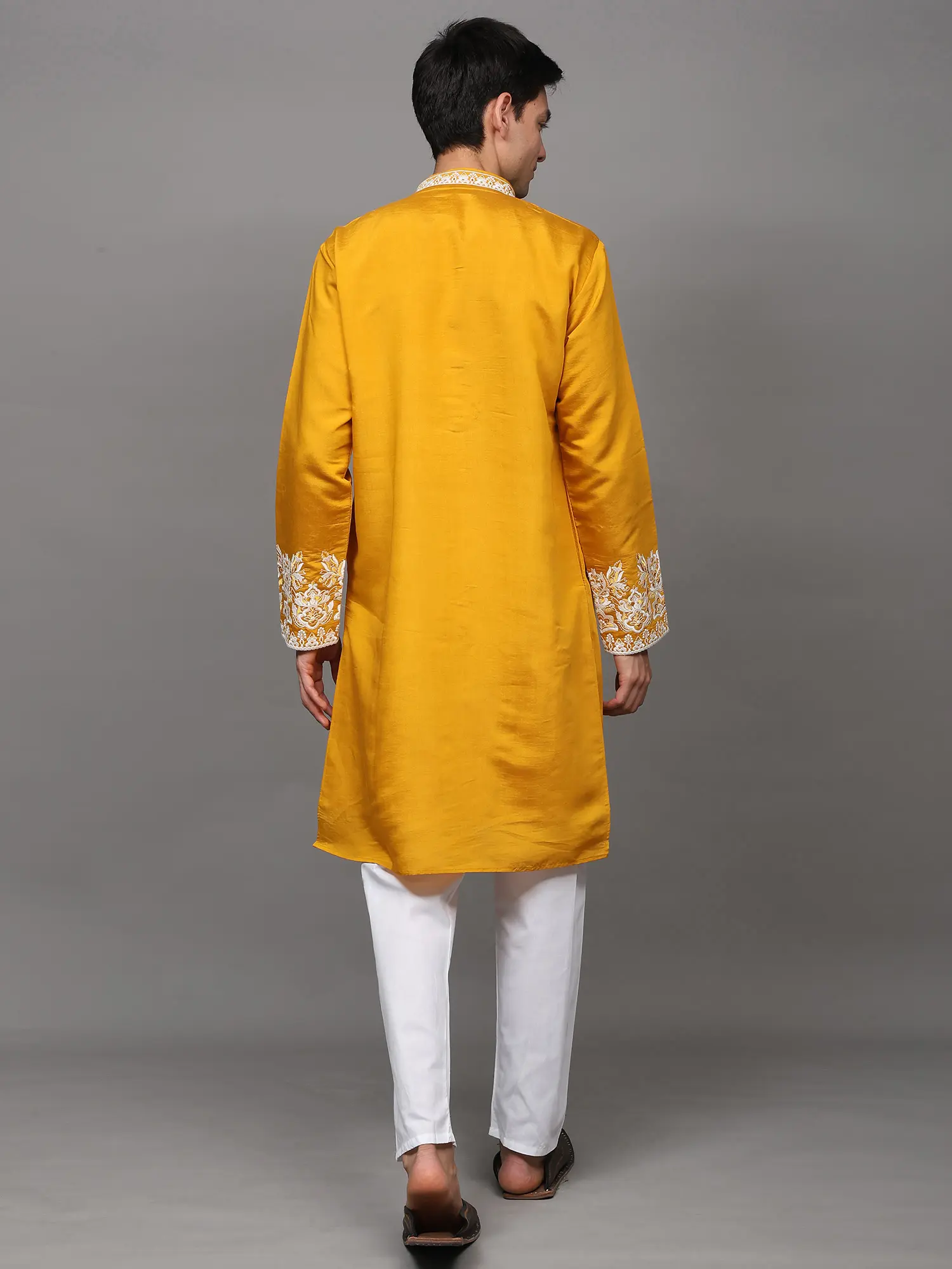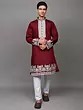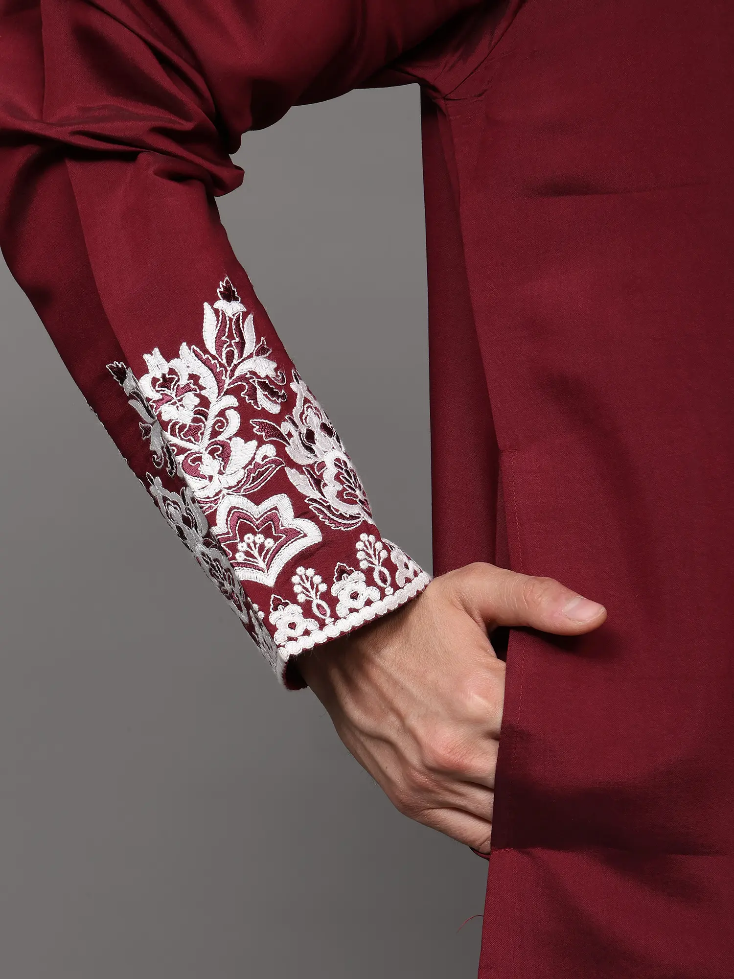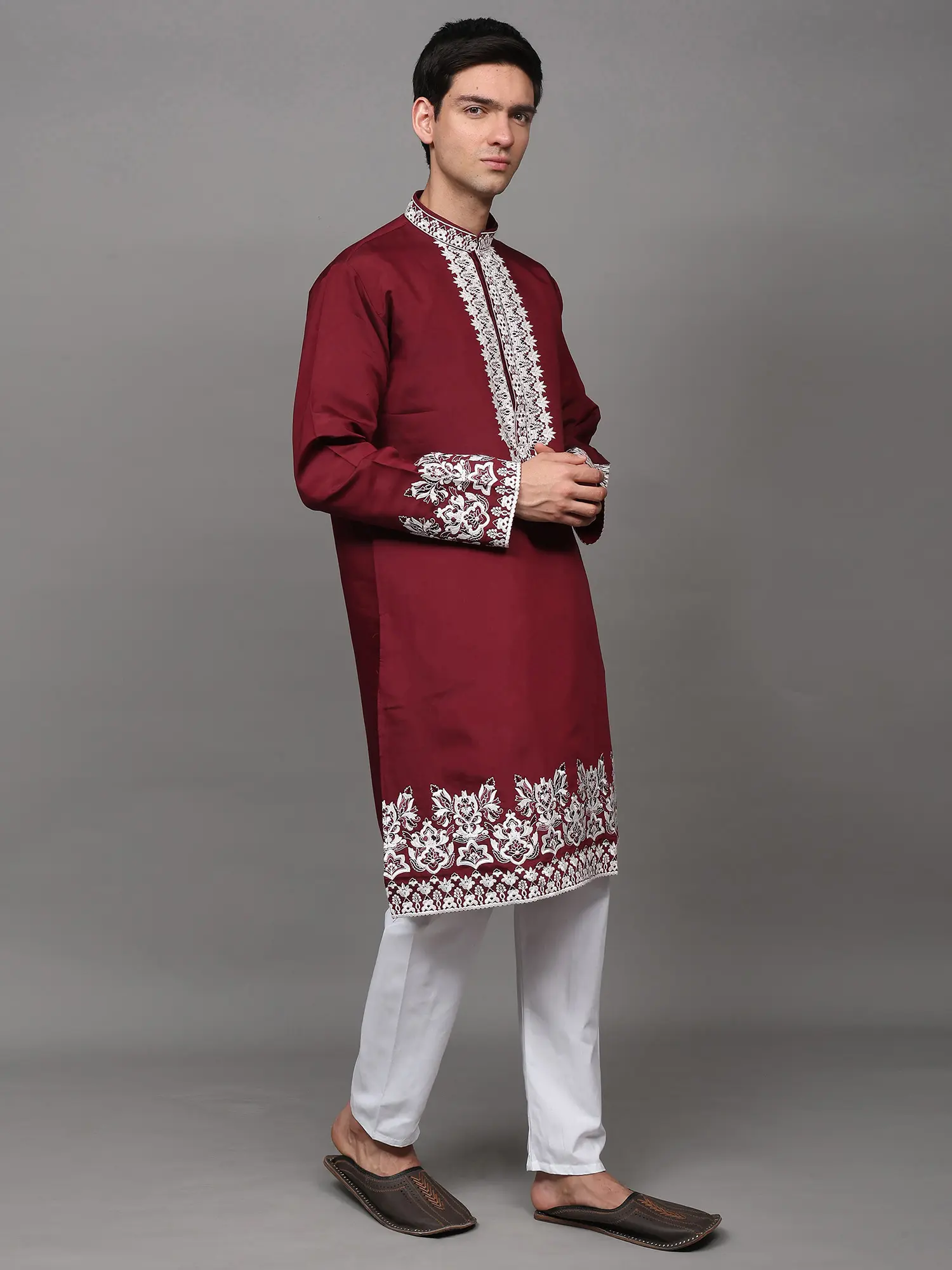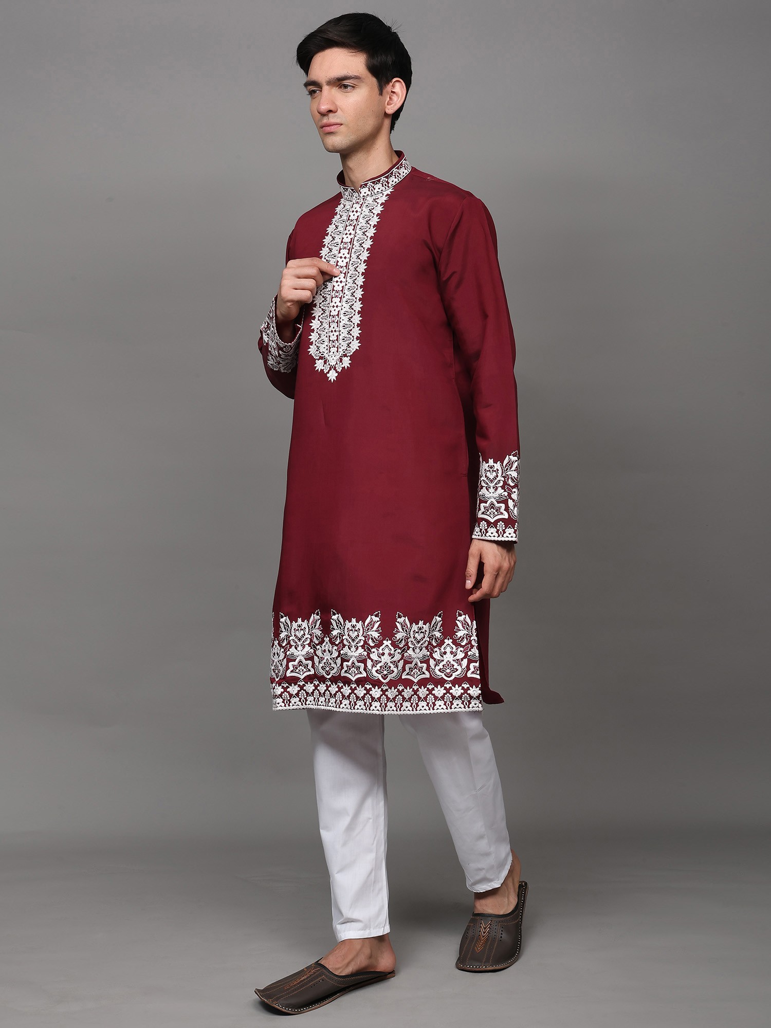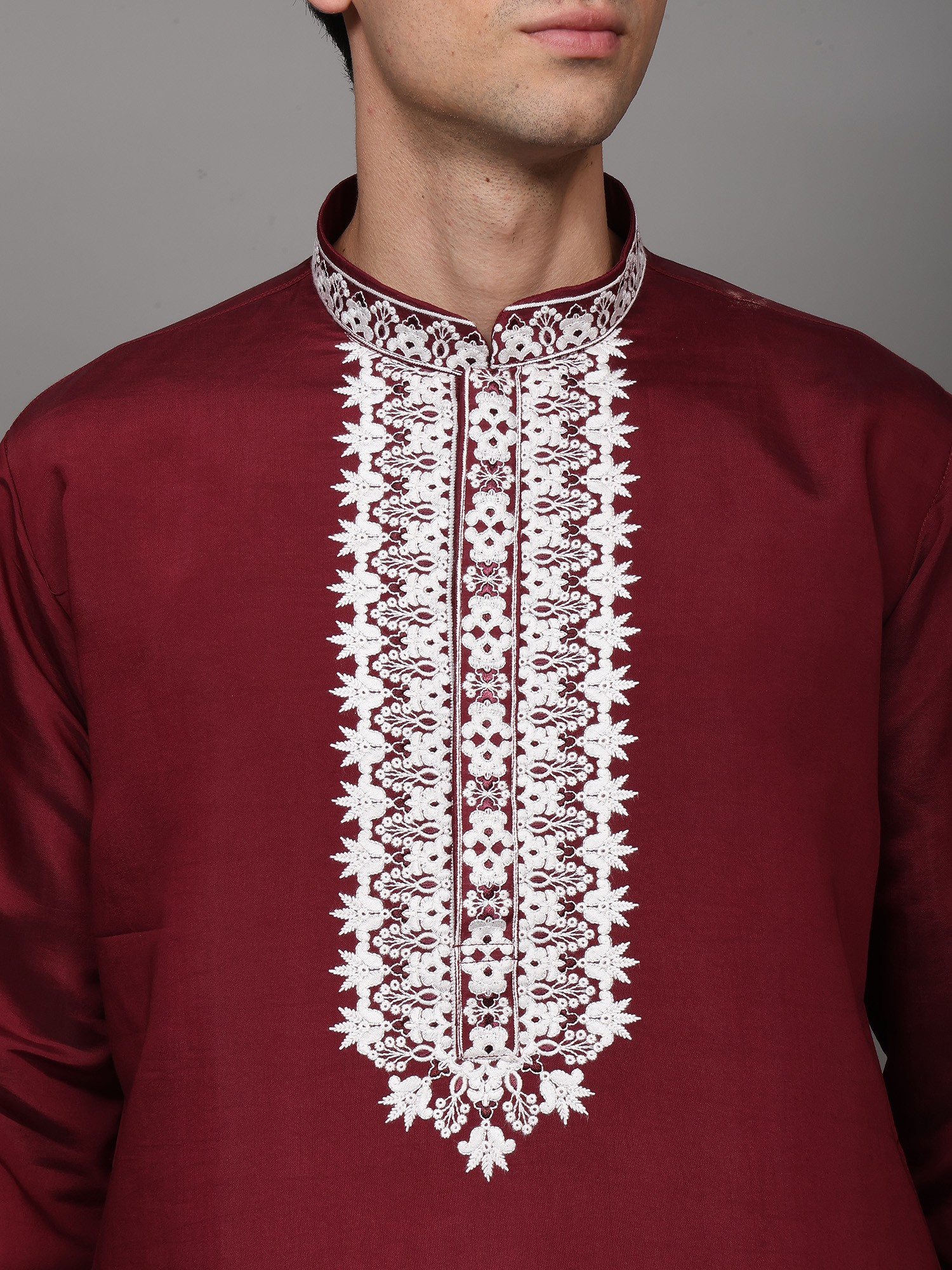 Plain Kurta Pajama Set with Zigzag Weave in Self and Embroidery on Neck