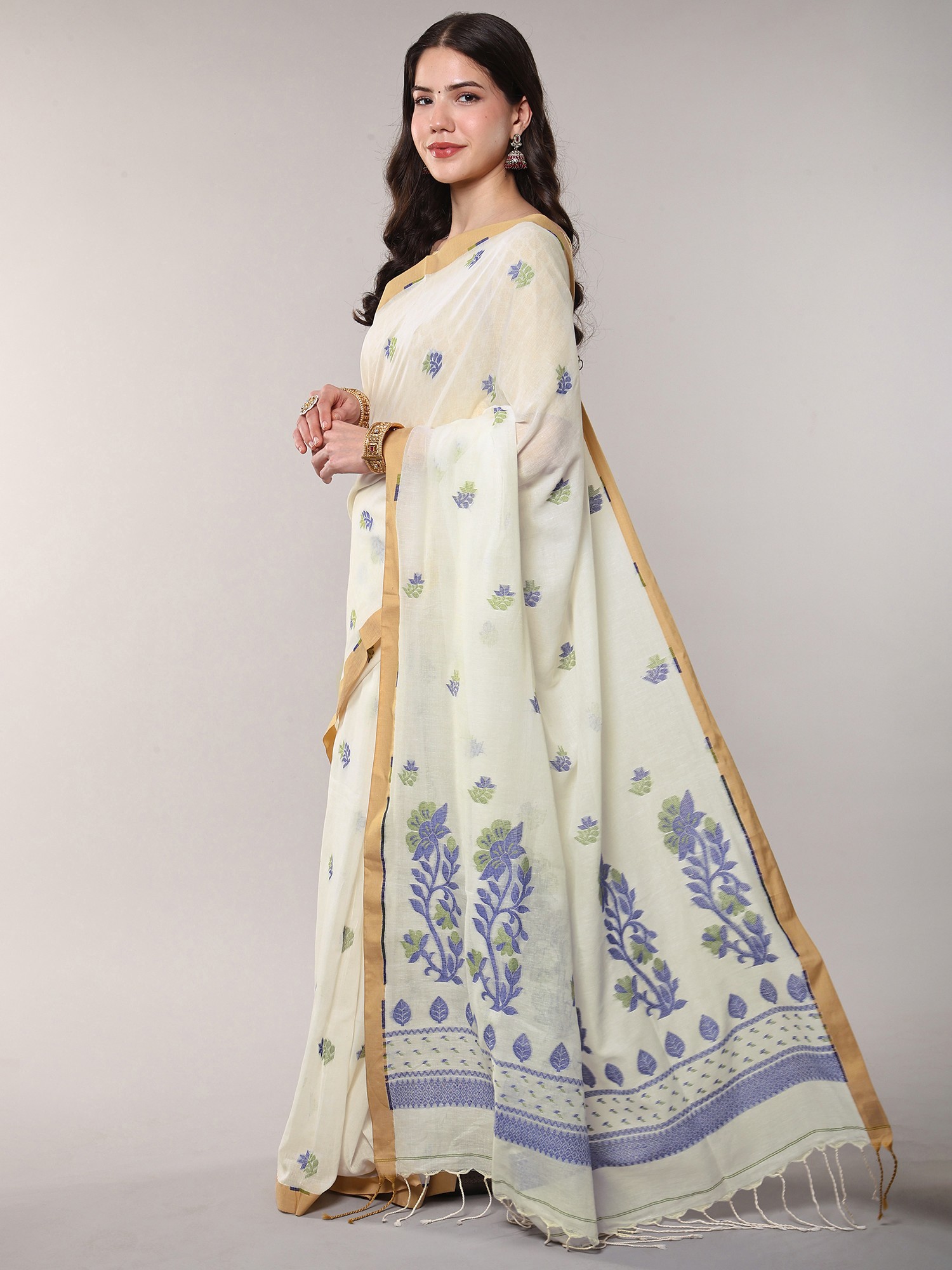 Dhakai Sari from Bengal with Leaf and Flowers All-Over