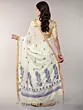 Bright-White Floral Leaves Woven Cotton Saree from Bengal with Contrast Blue Border