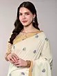 Ivory and Deep-Sea Garad Sari from Bengal with Woven Paisleys and Bootis