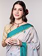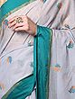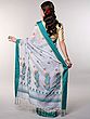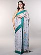 Ivory and Deep-Sea Garad Sari from Bengal with Woven Paisleys and Bootis