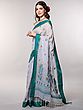 Ice-Green Tangail Saree from Bengal with Woven Fish Wide Border and Stripe Pallu
