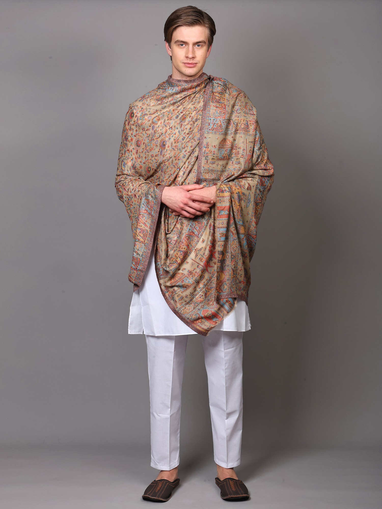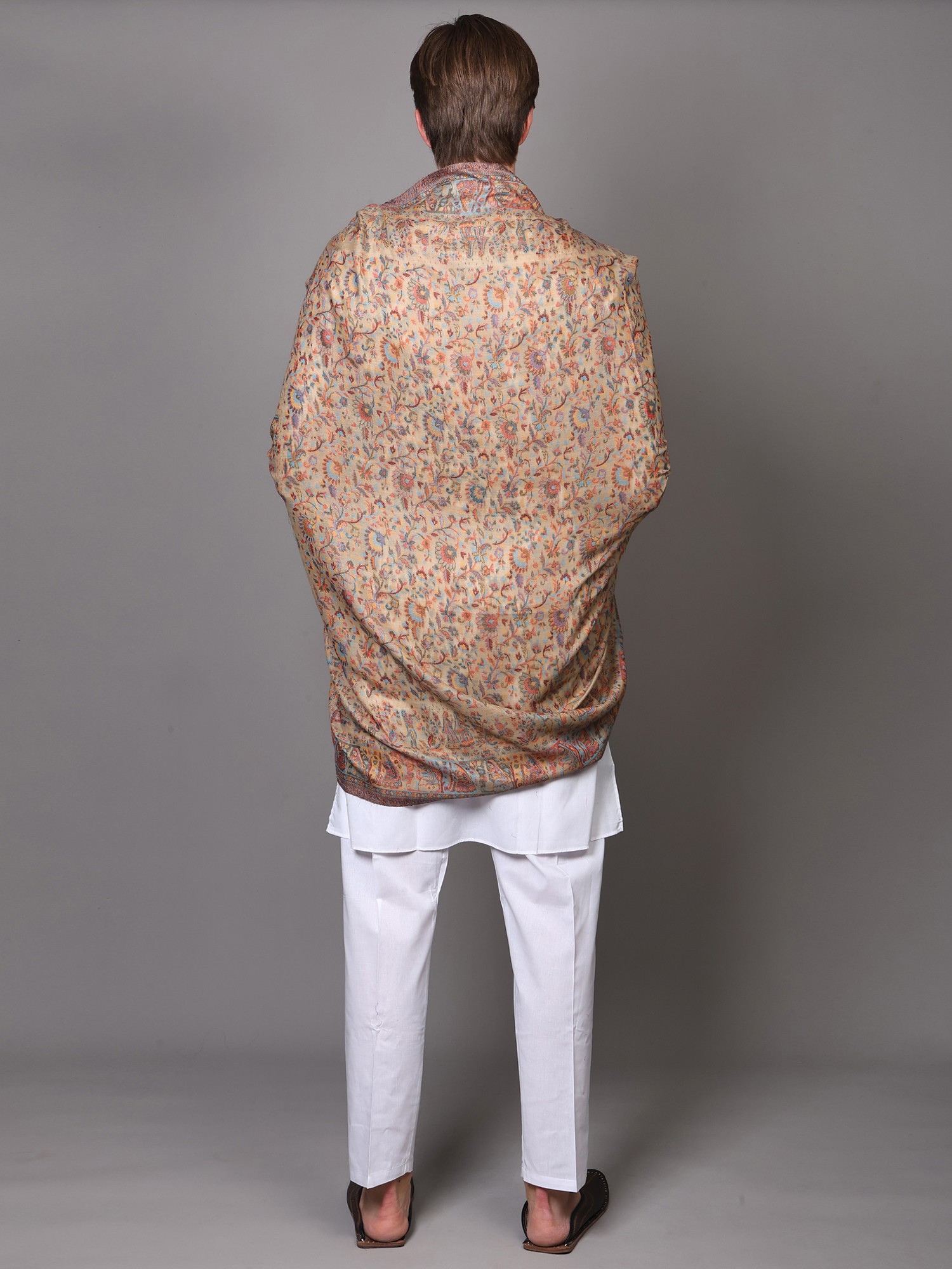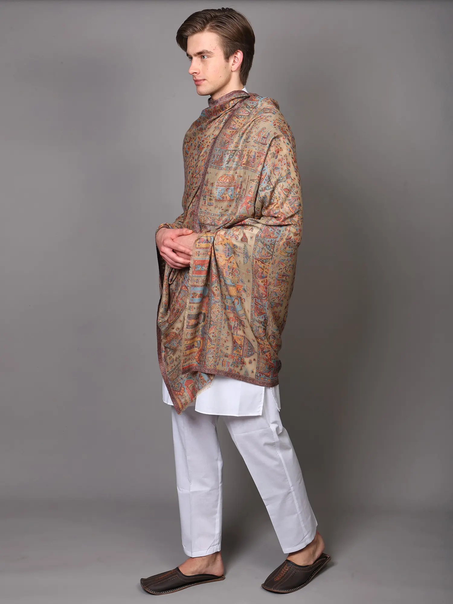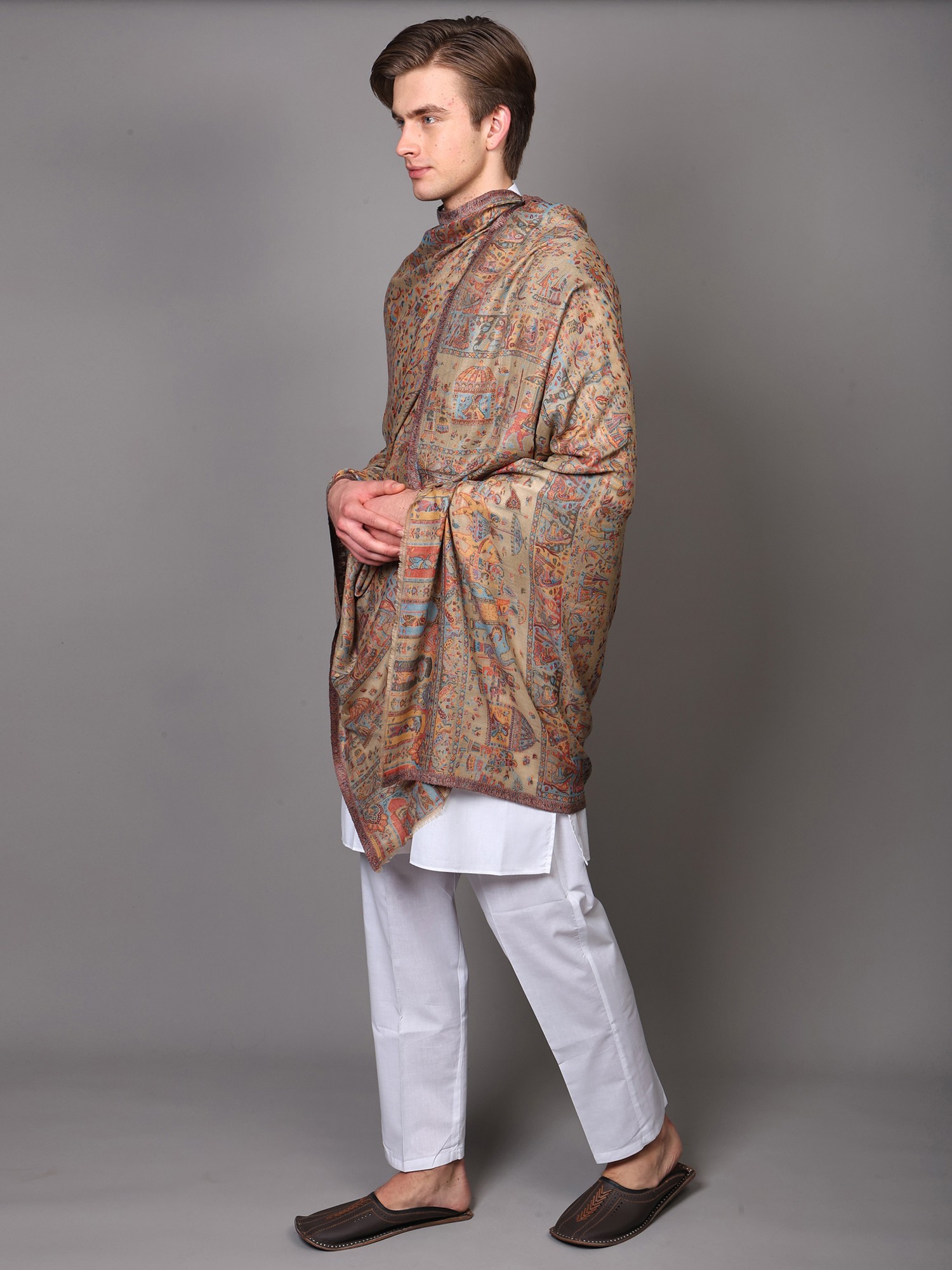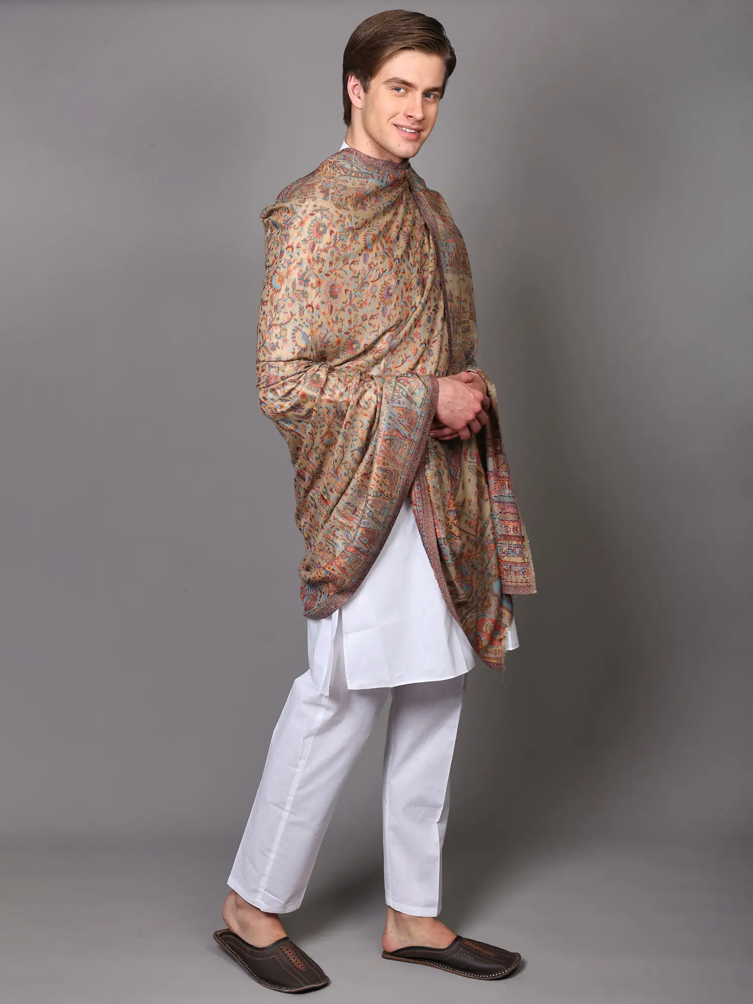 Men's Shawl with Woven Multiclor Flowers Motifs Shawl from Amritsar