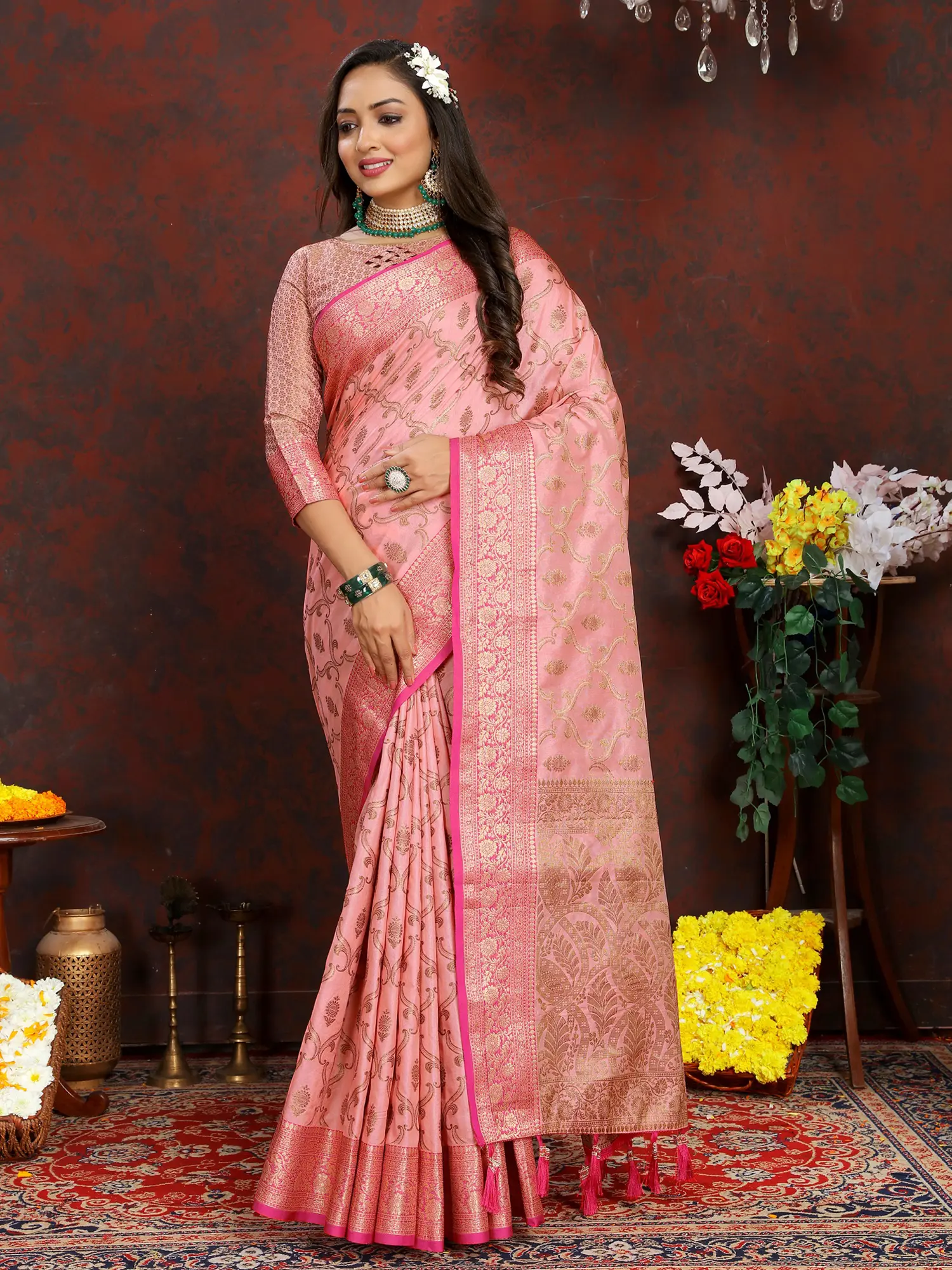 Rock-Ridge Pure Silk Brocaded Meenakari Banarasi Saree with All-Over Zari Woven Floral Jaal