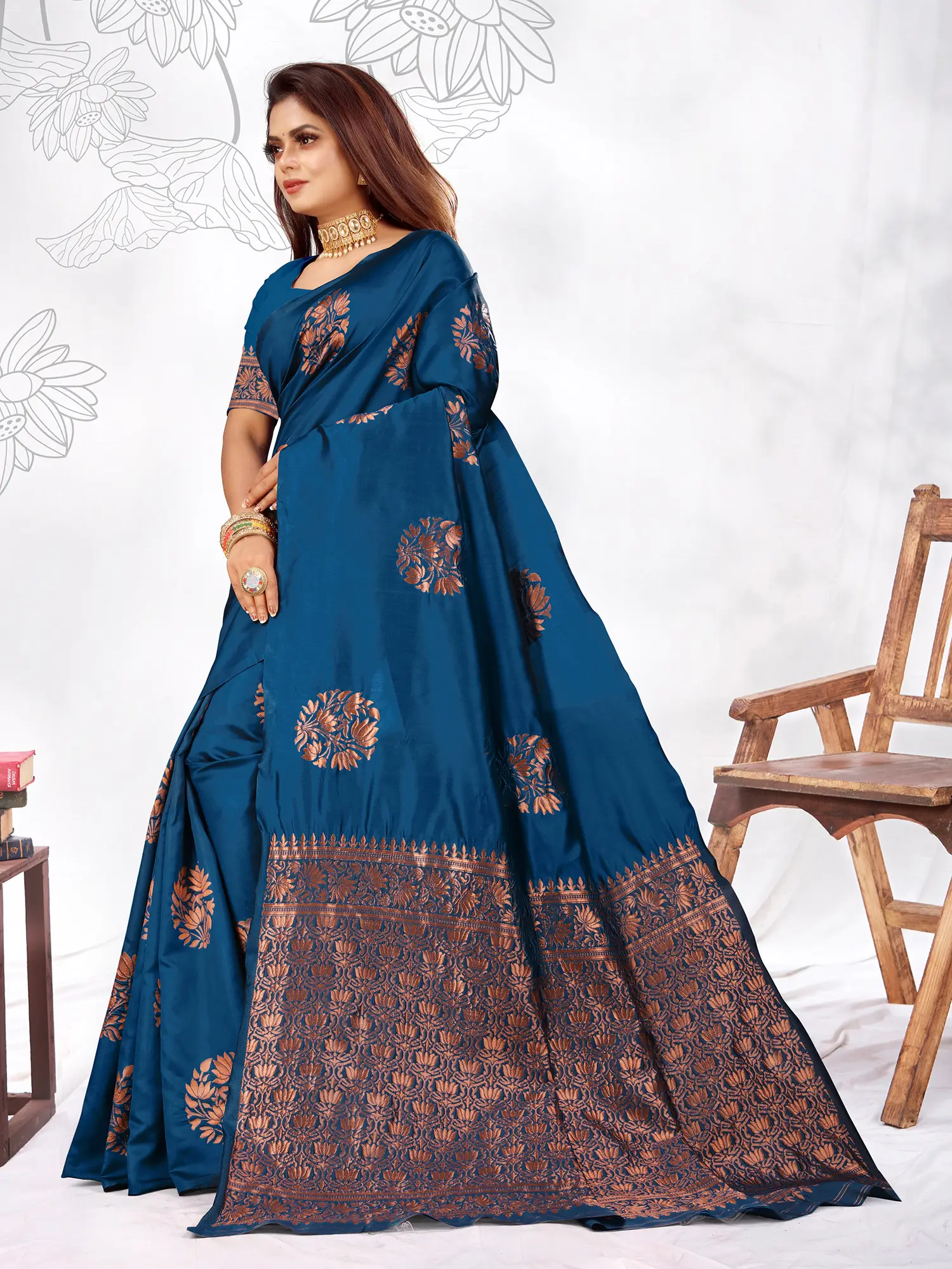 Blue Brocade Two Ply Fashion Mask from Banaras with Woven Flowers and Cotton-Backing