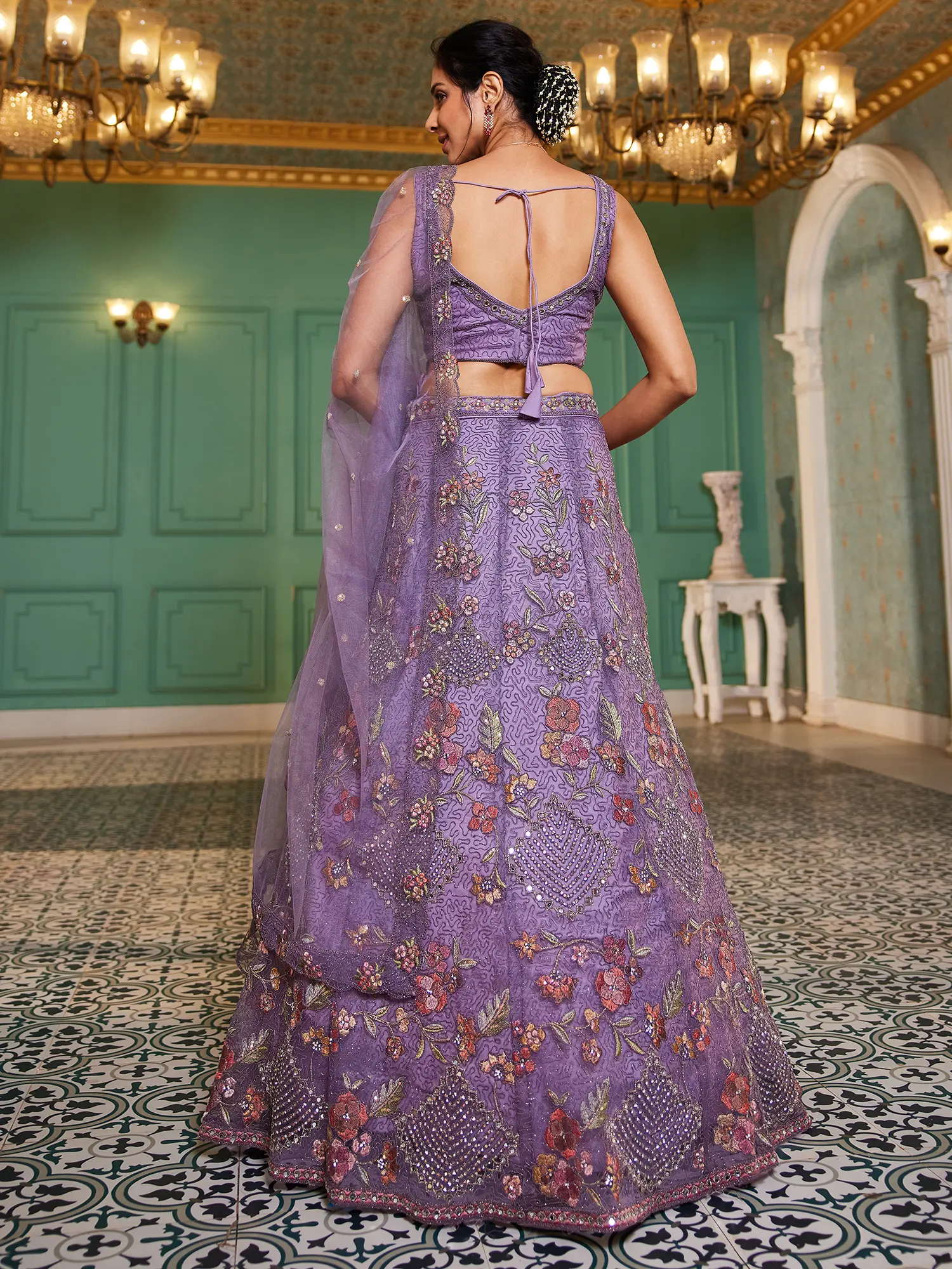 Light-Pink Soft Net Thread Embroidered Lehenga Choli with Sheer Dupatta