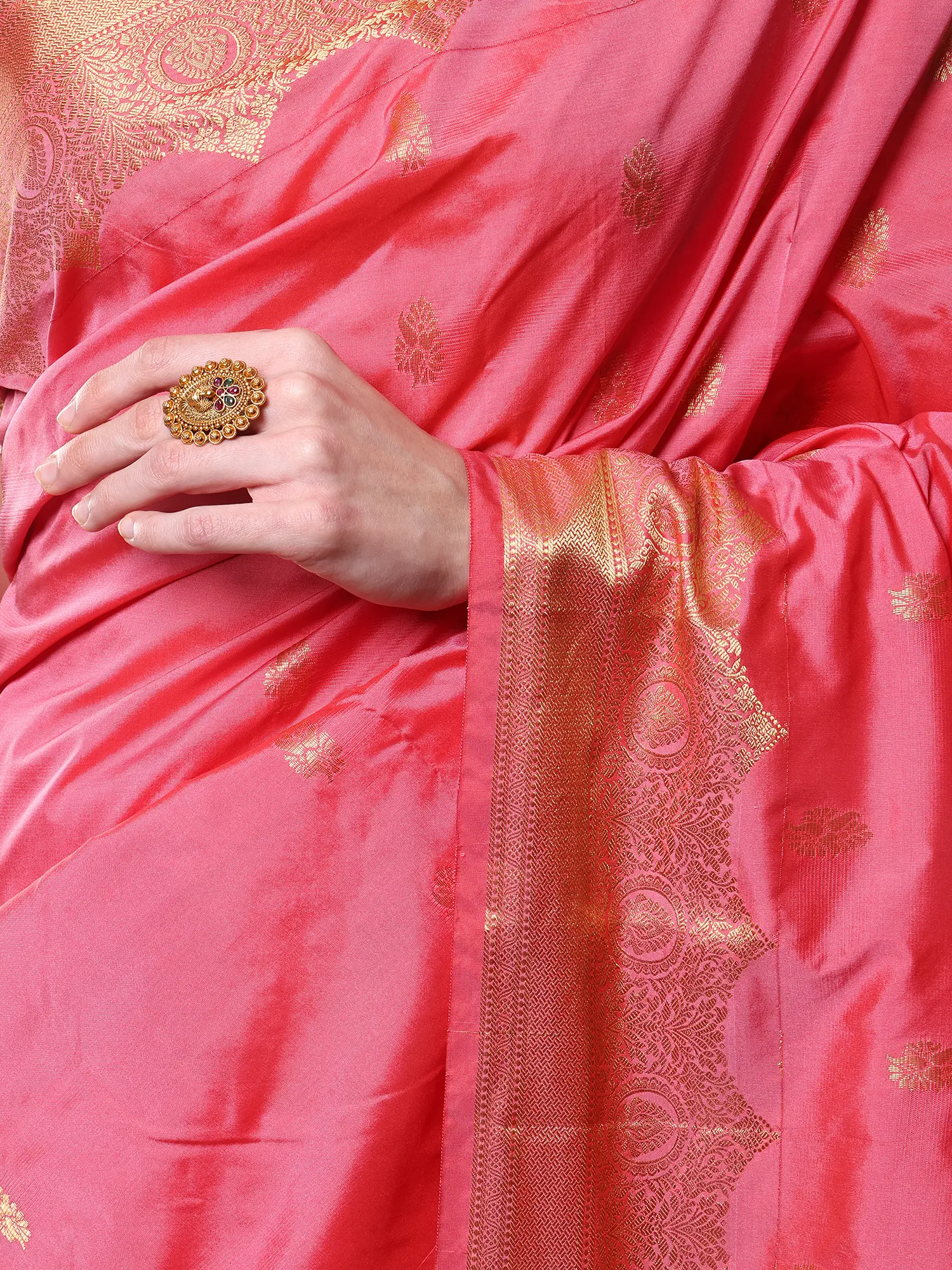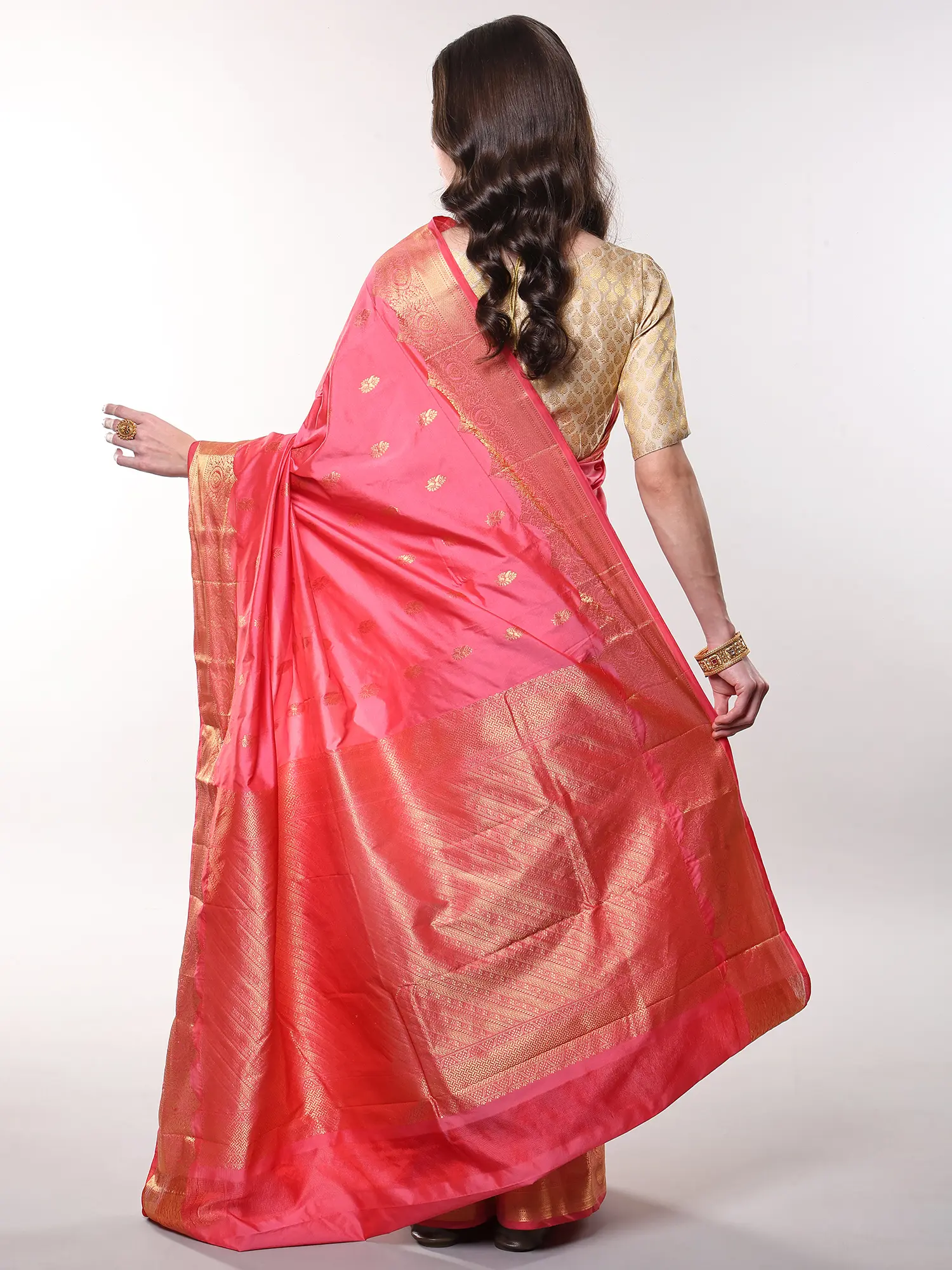 Sunset-Gold Floral Pattern Pure Silk Saree from Bangalore with Zari Weave