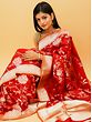 This pure silk Banarasi Saree is a tasteful option for modern women, to complement the goddess in them on their big day.