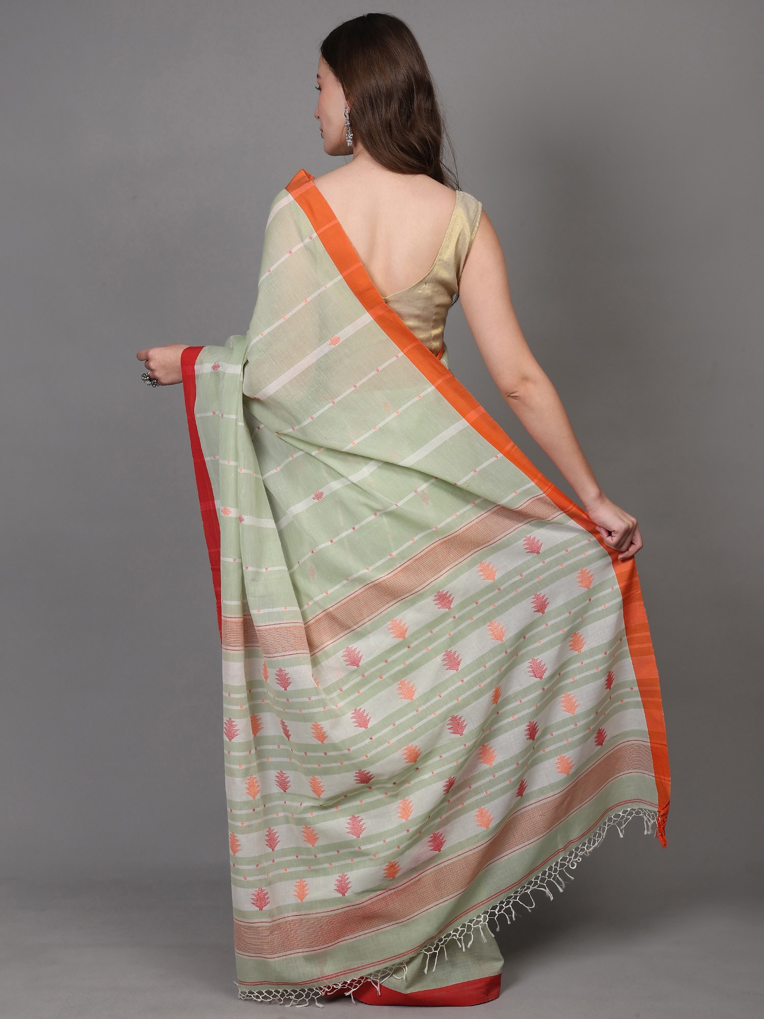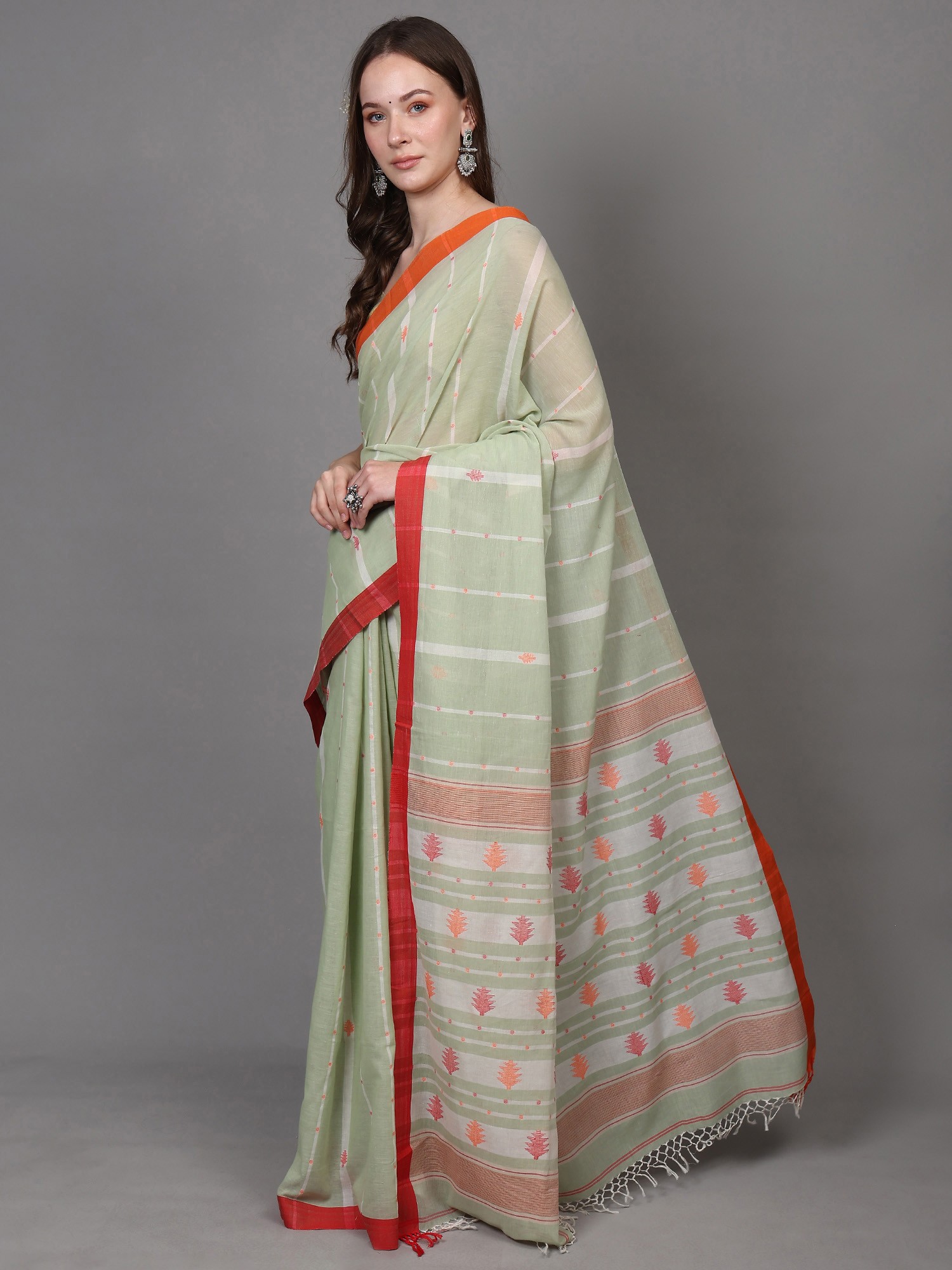 Arctic-Wolf Bootis woven Pure Cotton Saree with Kilim Pattern Border and Zari work