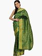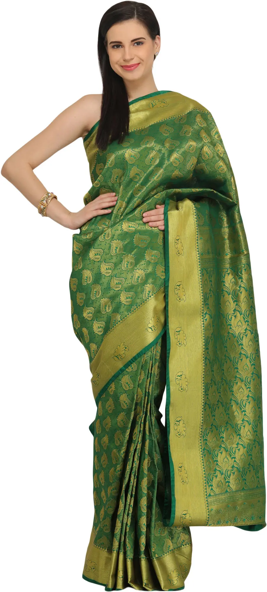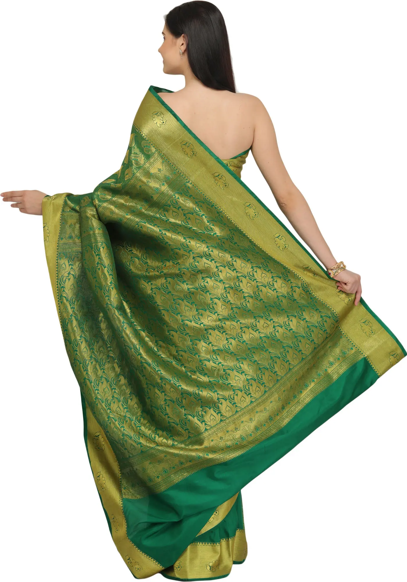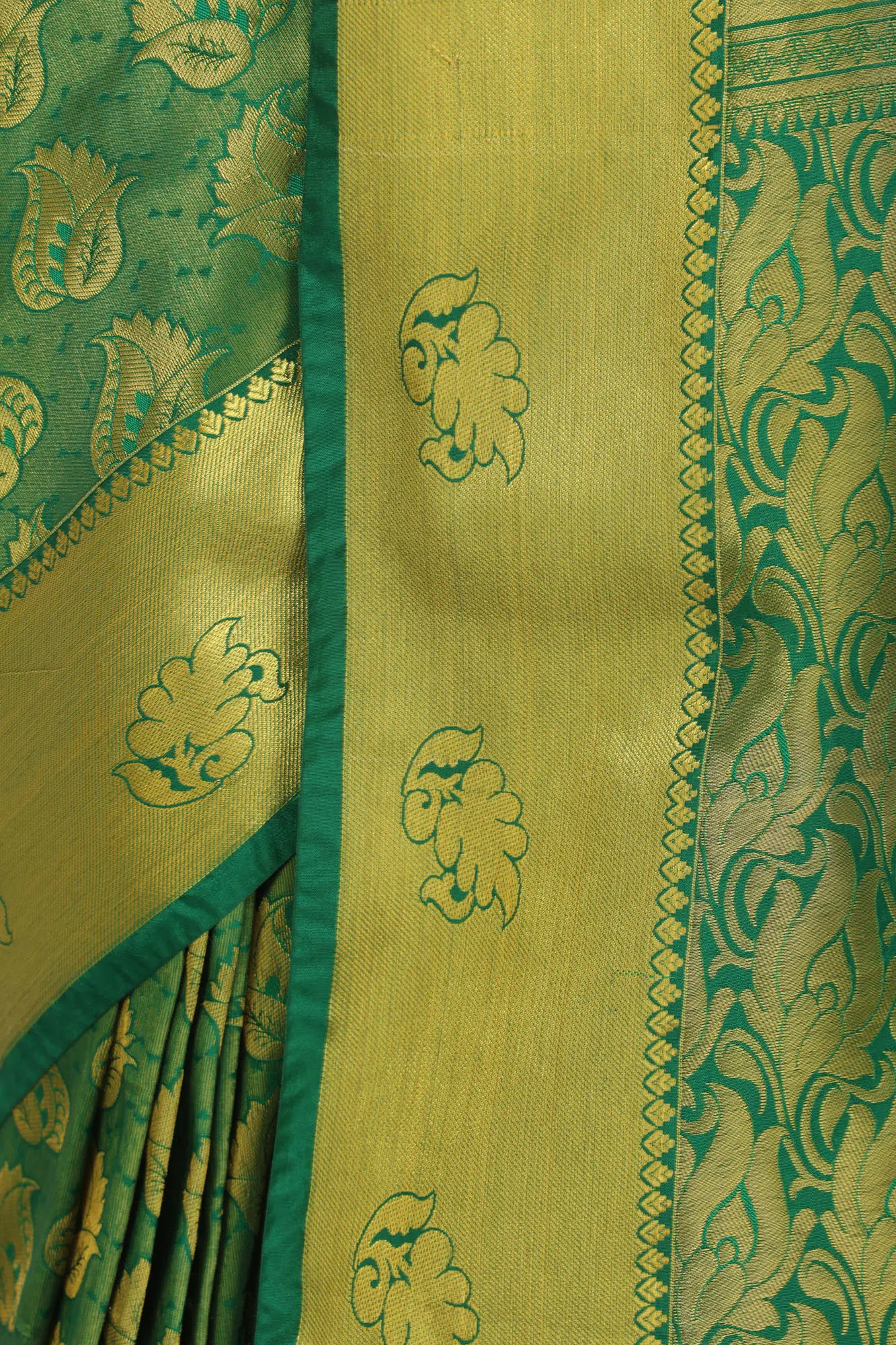 Fir-Green Pure Silk Saree from Bangalore with All-over Leaf Weave
