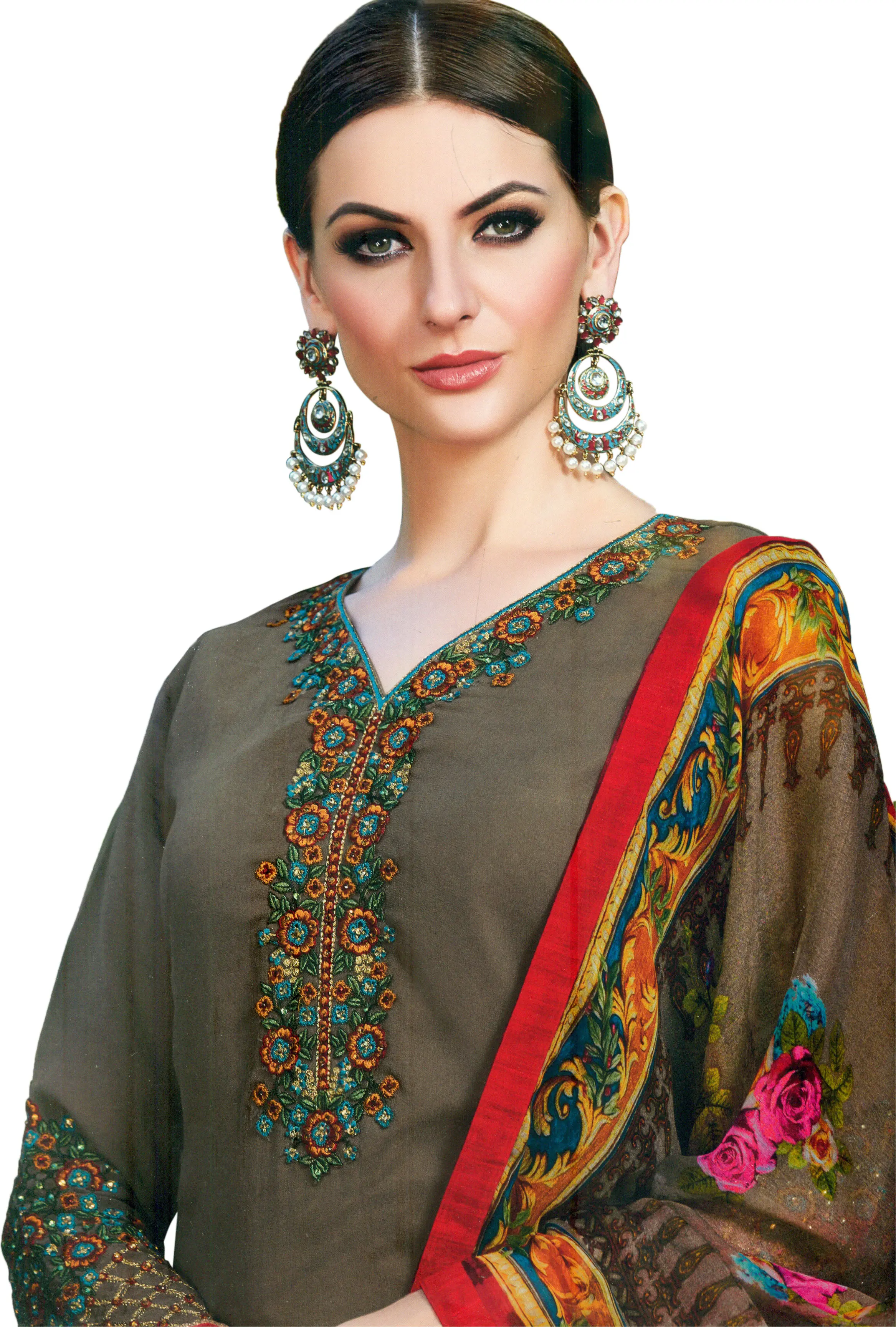 Discover the epitome of grace and sophistication with this exquisite fossil-brown choodidaar salwar kameez suit. Crafted from luxurious georgette, this ensemble promises a fluid drape and unparalleled comfort, making it an ideal choice for any special occasion or a refined addition to your ethnic wear collection. The rich, earthy tone of the fossil-brown provides a canvas for intricate detailing that elevates this suit from beautiful to breathtaking.