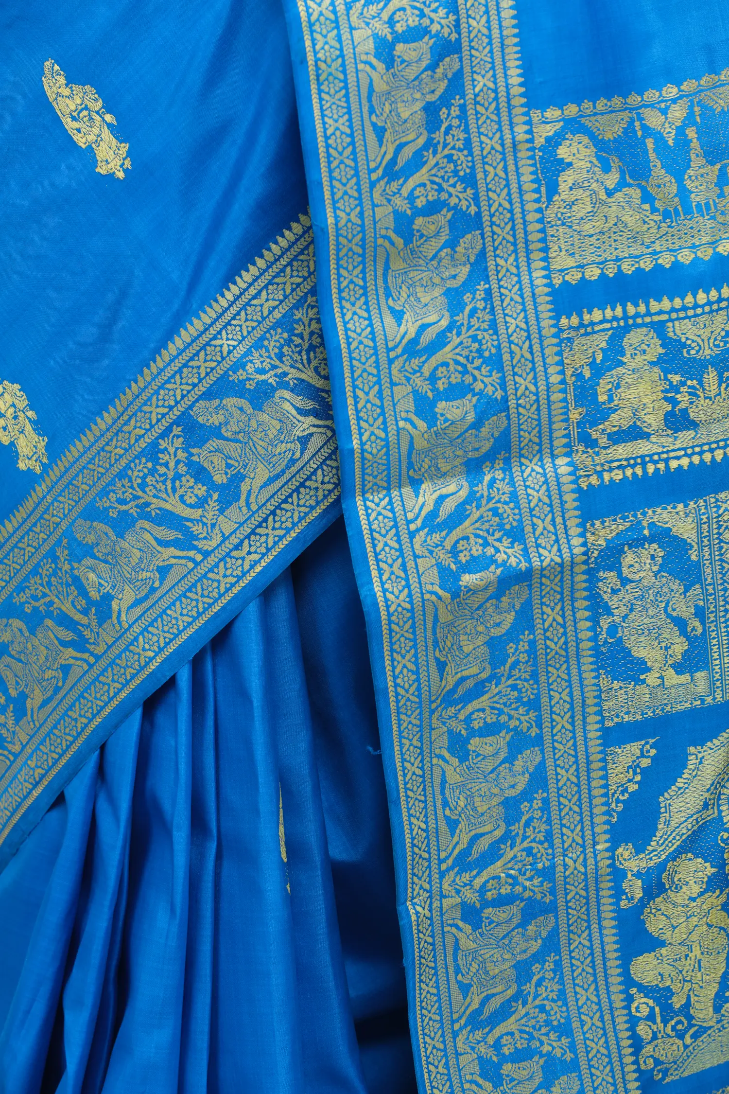 Handwoven Silk Saree: Medieval Blue with Golden Wedding Motif Border