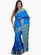 Blue Pure Silk Handloom Saree with Golden Zari Bootis and Floral Border