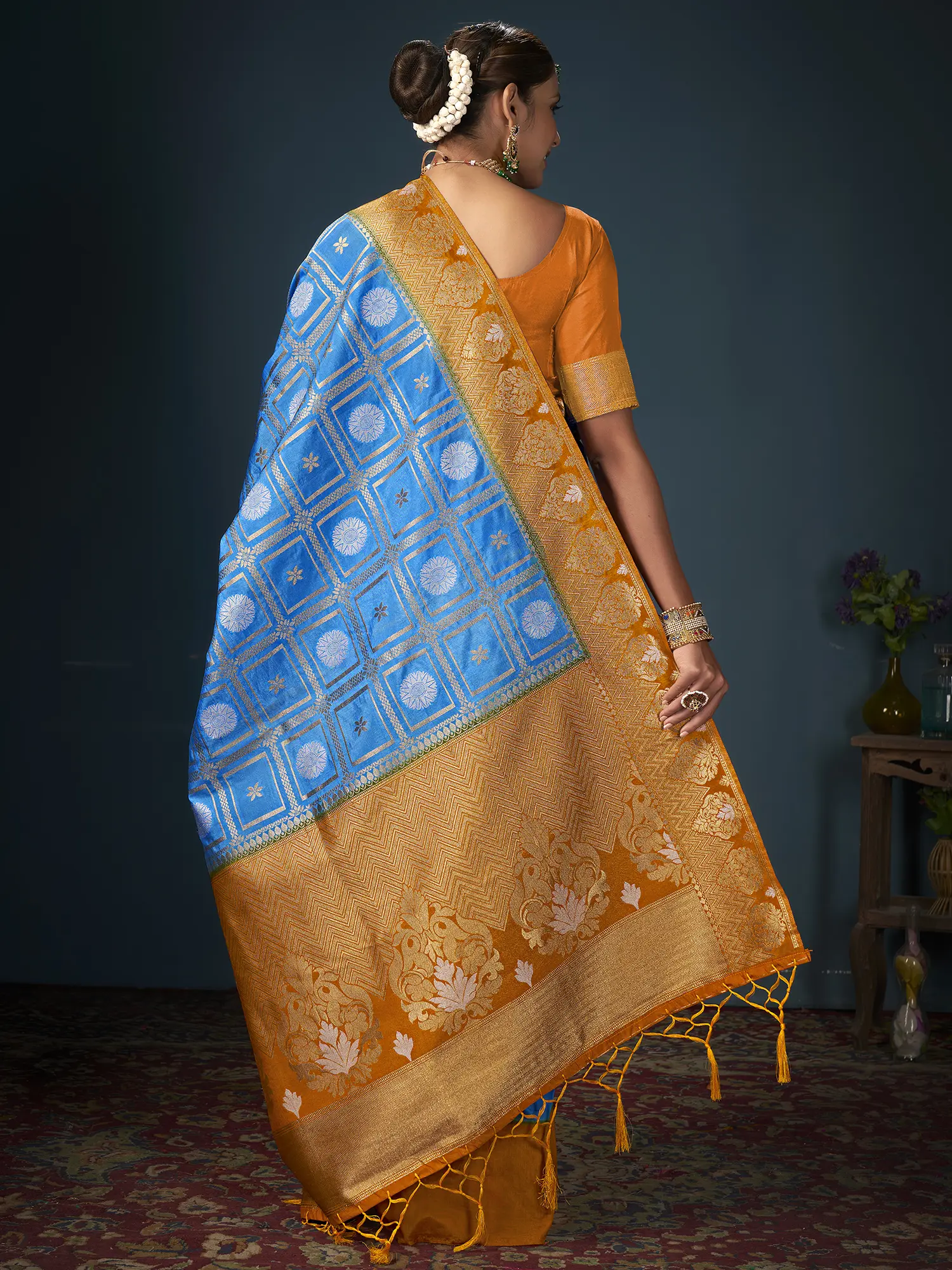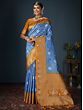 Mirage-Gray Banarasi Saree with Golden Foil Printed Pattern and Marriage Procession Pattern Border