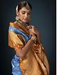 Temple Border Banarasi Saree with All-Over Stripes Weave and Zari work Wide Border-Anchal