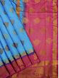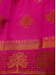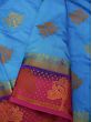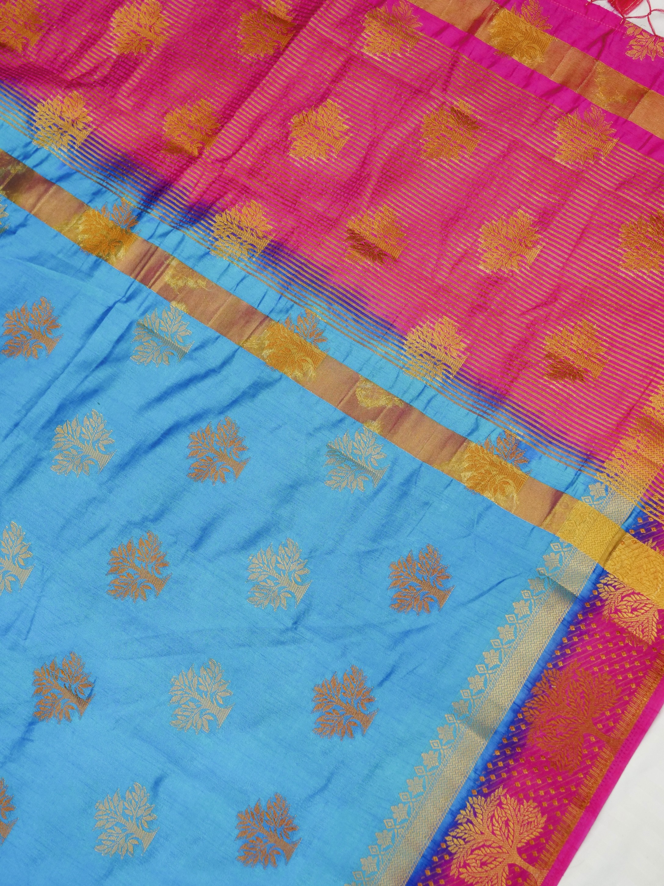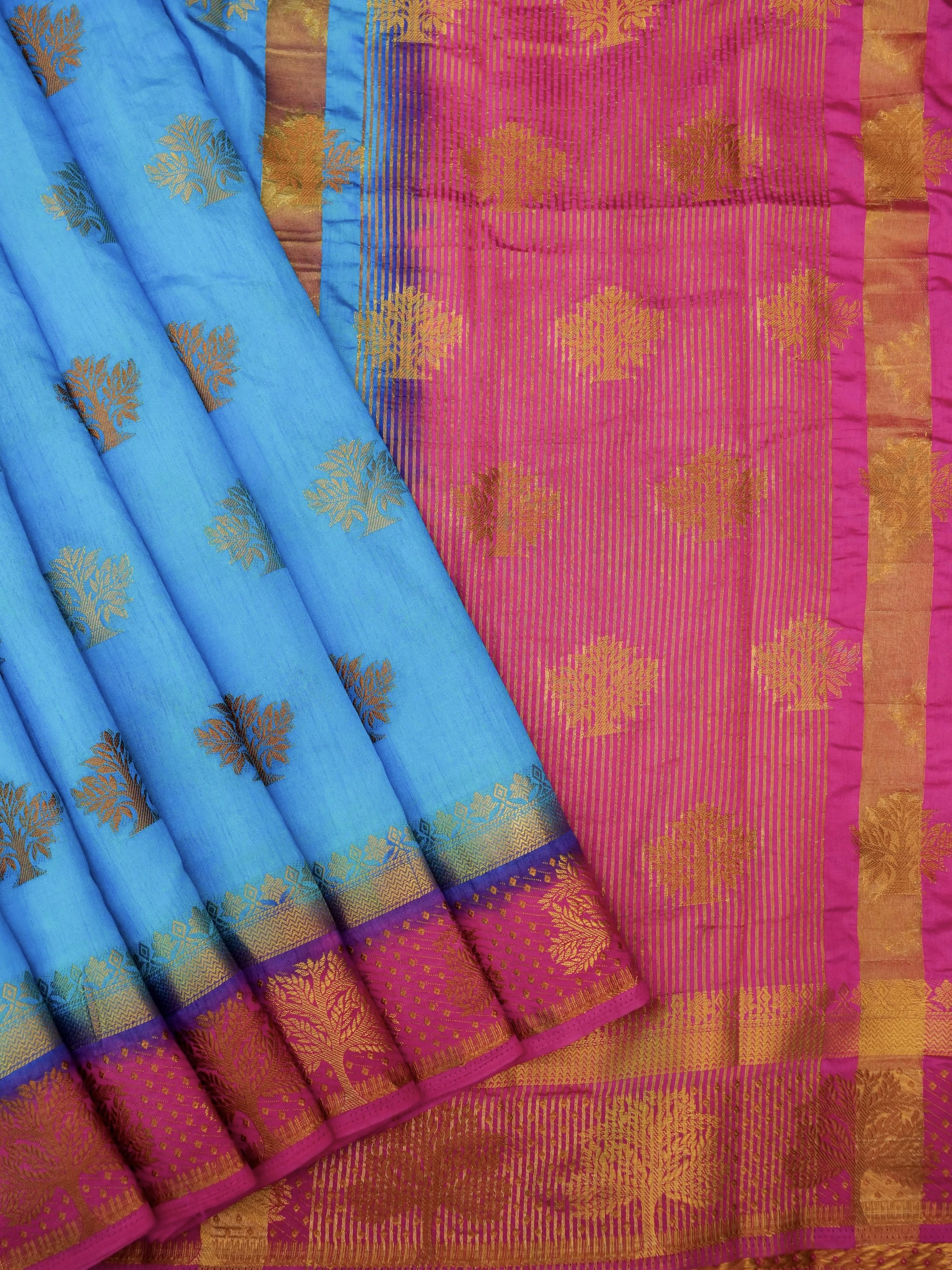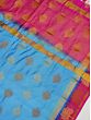 A refreshing blue tone on the body and a lovely pink on the border and pallu, give you a matchless Banarasi saree, which is easy on the pocket and exquisite in style.