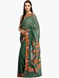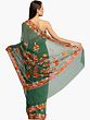 Frosty-Spruce Kashmiri Sari with Aari Embroidered Flowers on Border and Pallu