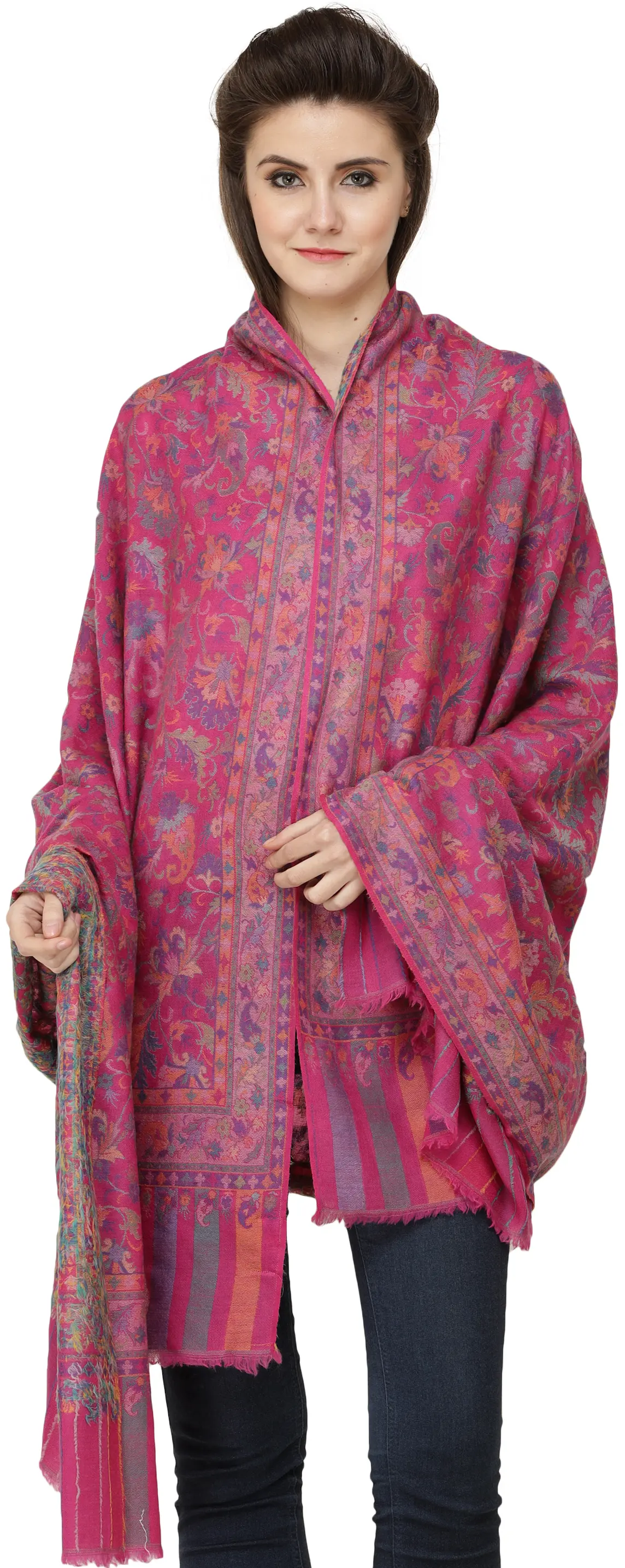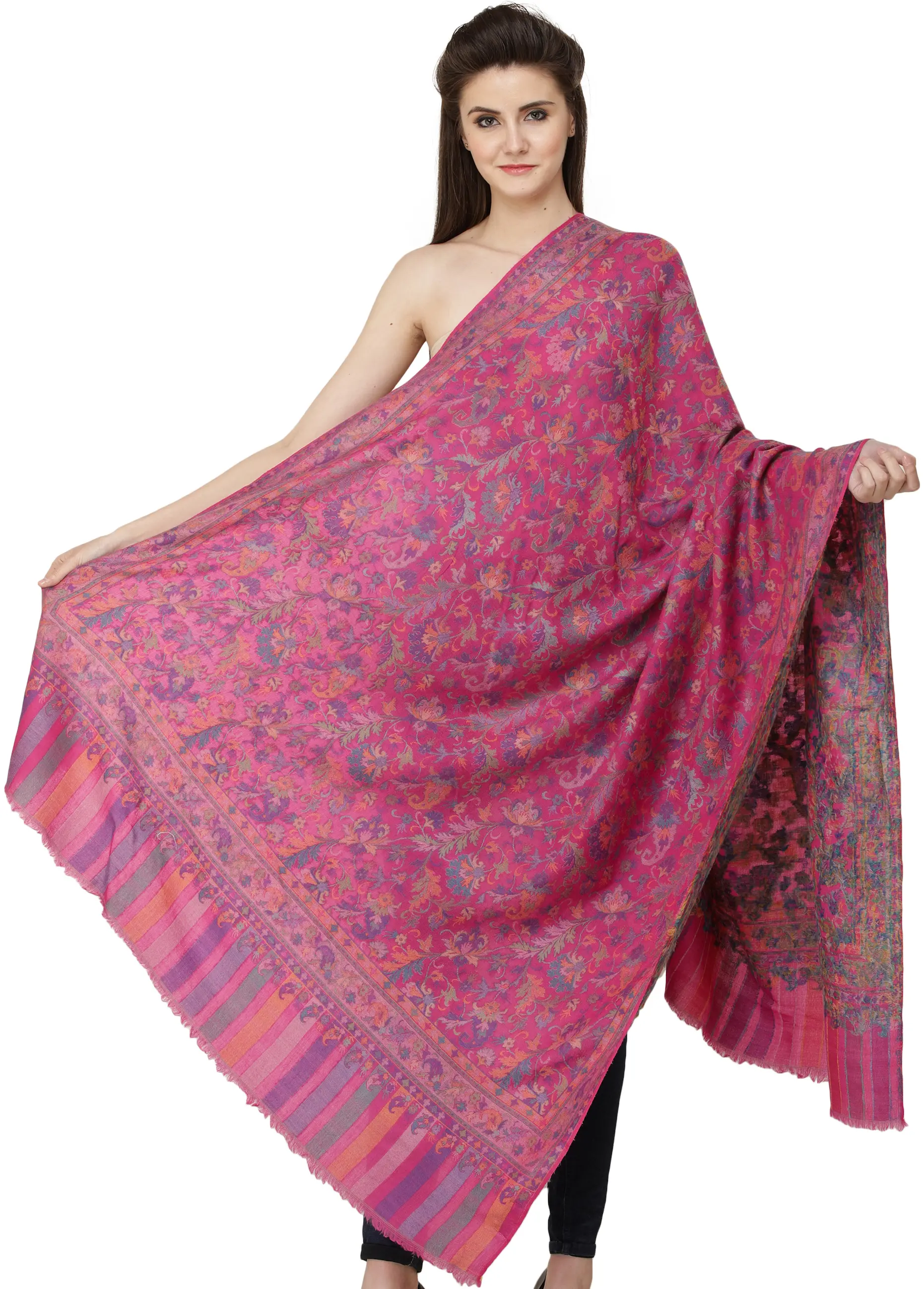 Kani Jamawar Shawl from Amritsar with Woven Multicolor Flowers and Paisleys