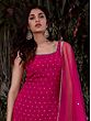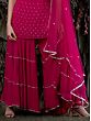 Fuchsia Pink in Indian culture is dotingly known as “Rani Color” or the shade of a queen (Rani). This georgette Sharara suit set is here to prove why this is the most befitting way to describe anything Fuchsia.