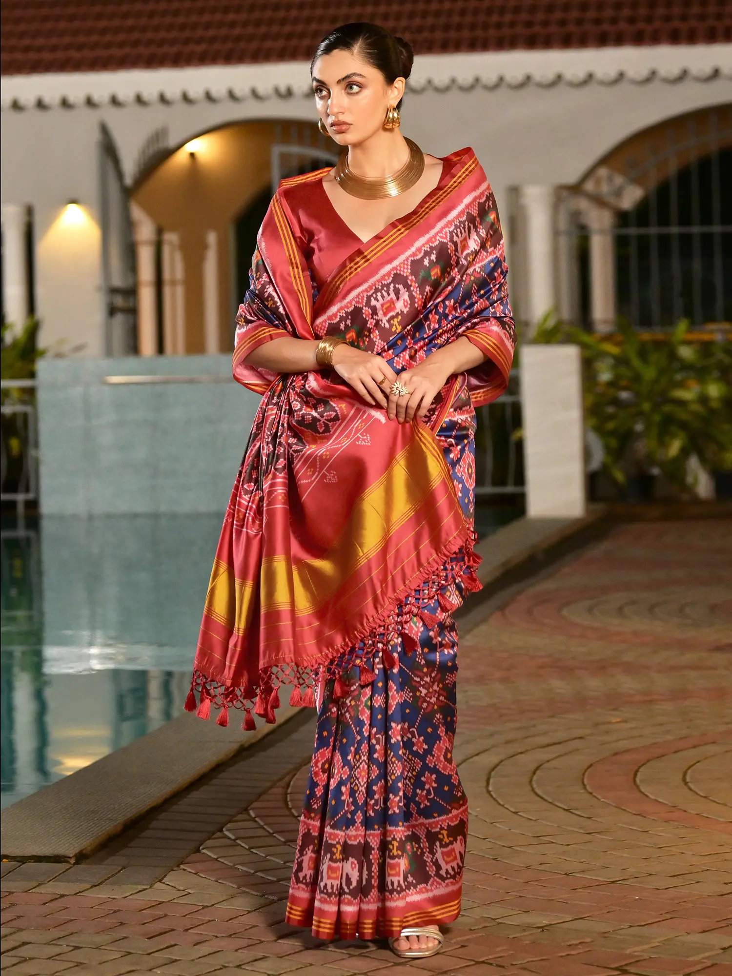 Bright-Pink Temple Border Banarasi Saree with Zari Woven Paisleys and Contrast Pallu