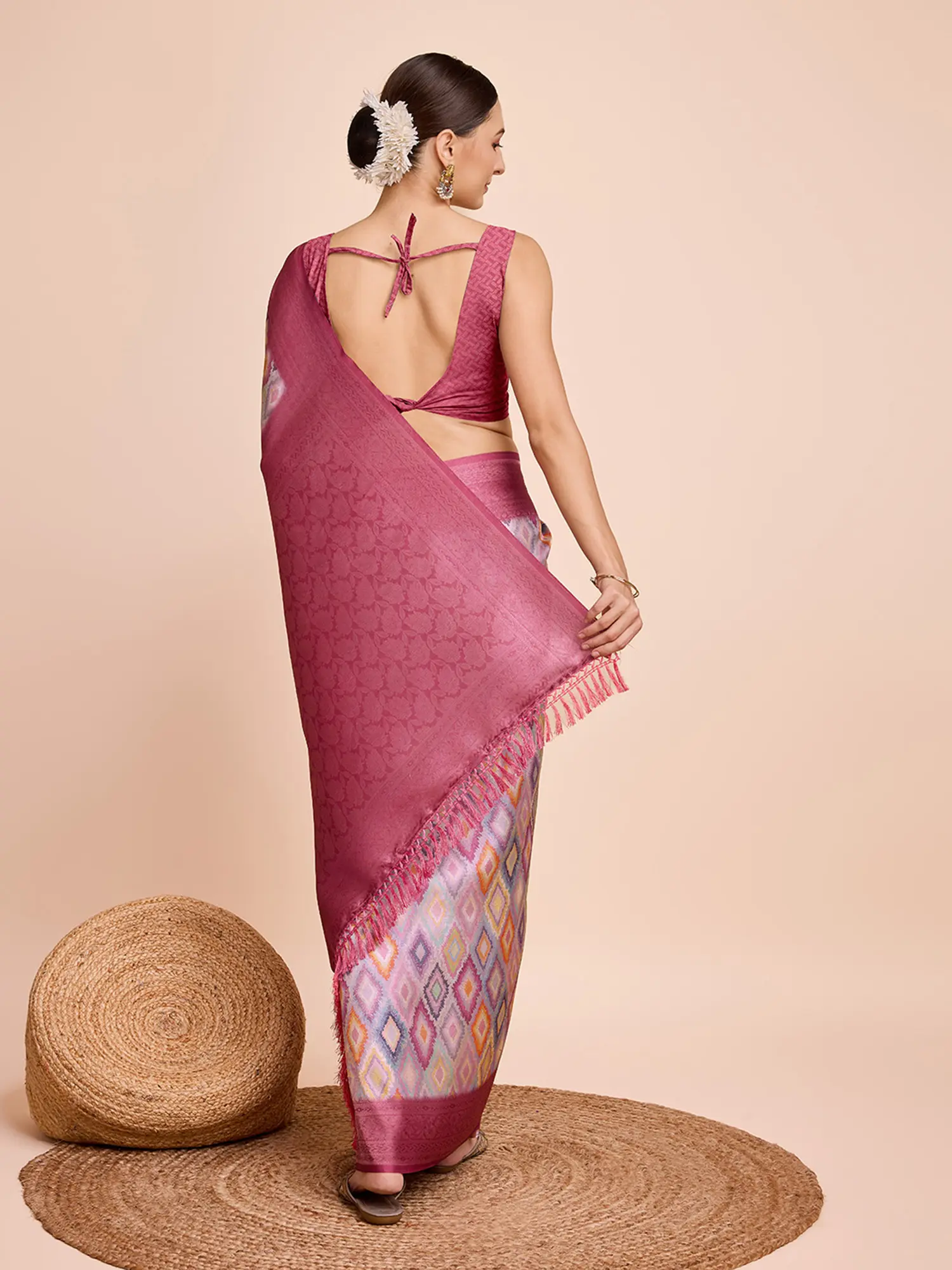 Cotton Silk Stunning Geometric Pattern Party Wear Saree With Blouse