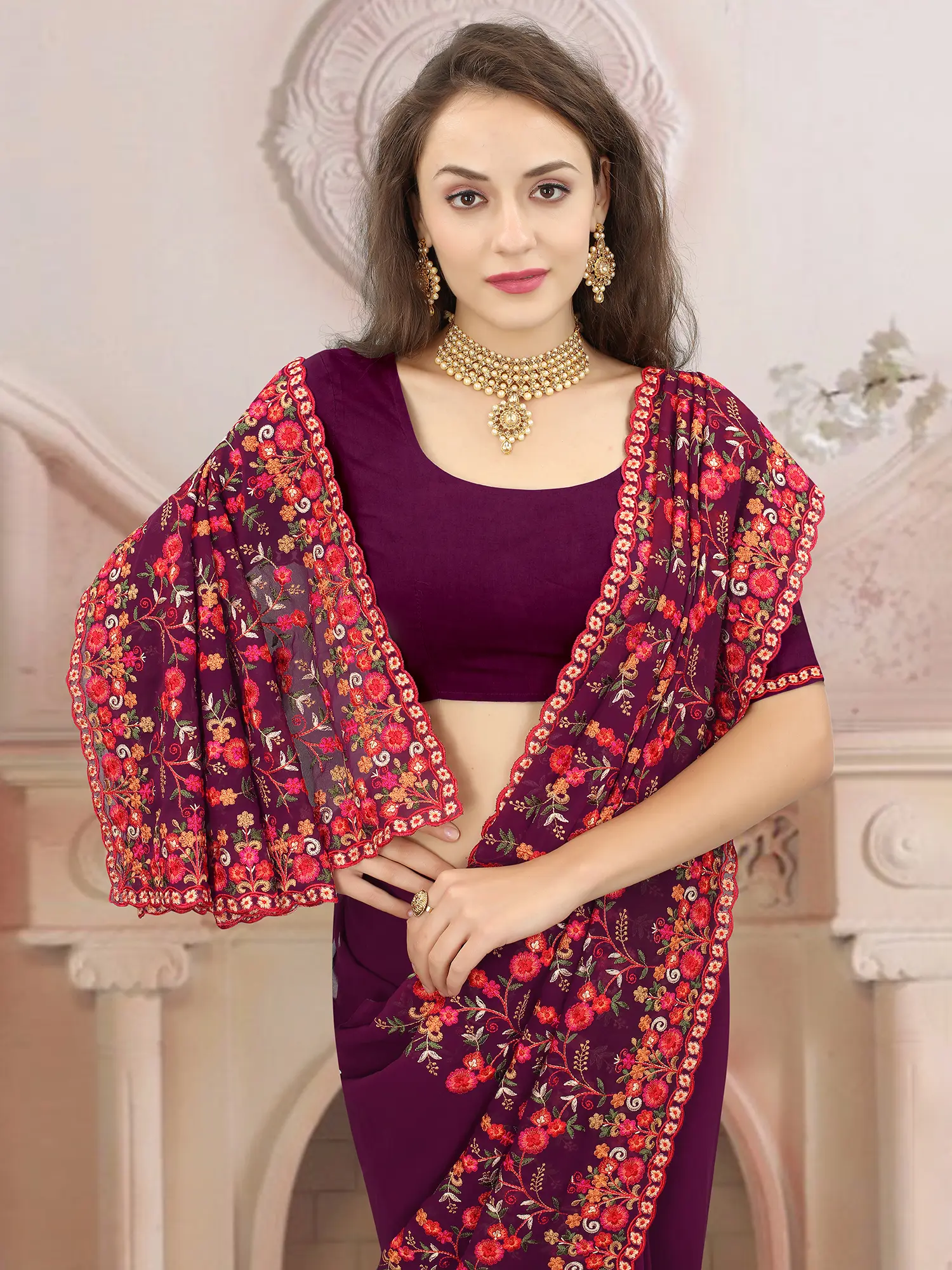 Georgette Kashmiri Sari with Beautiful All-Over Kashida Embroidery