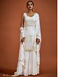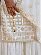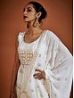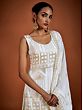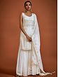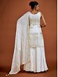 What better way to express your elegance and regal taste in fashion than white ethnic Indian wear? This designer gerogette sharara suit brings royal bling to your festive wardrobe. The chic georgette fabric is tailored beautifully, with a fitted kurti adorned with shimmering sequins all over, complemented by the flowing Sharara style pants and feathery soft designer dupatta.
