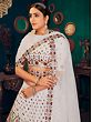 Dark-Cream Premium Heavy Net Classical Dancer Girl Motif Lehenga Choli With Multi Thread, Zari, Diamond Embroidery And Maroon Dupatta