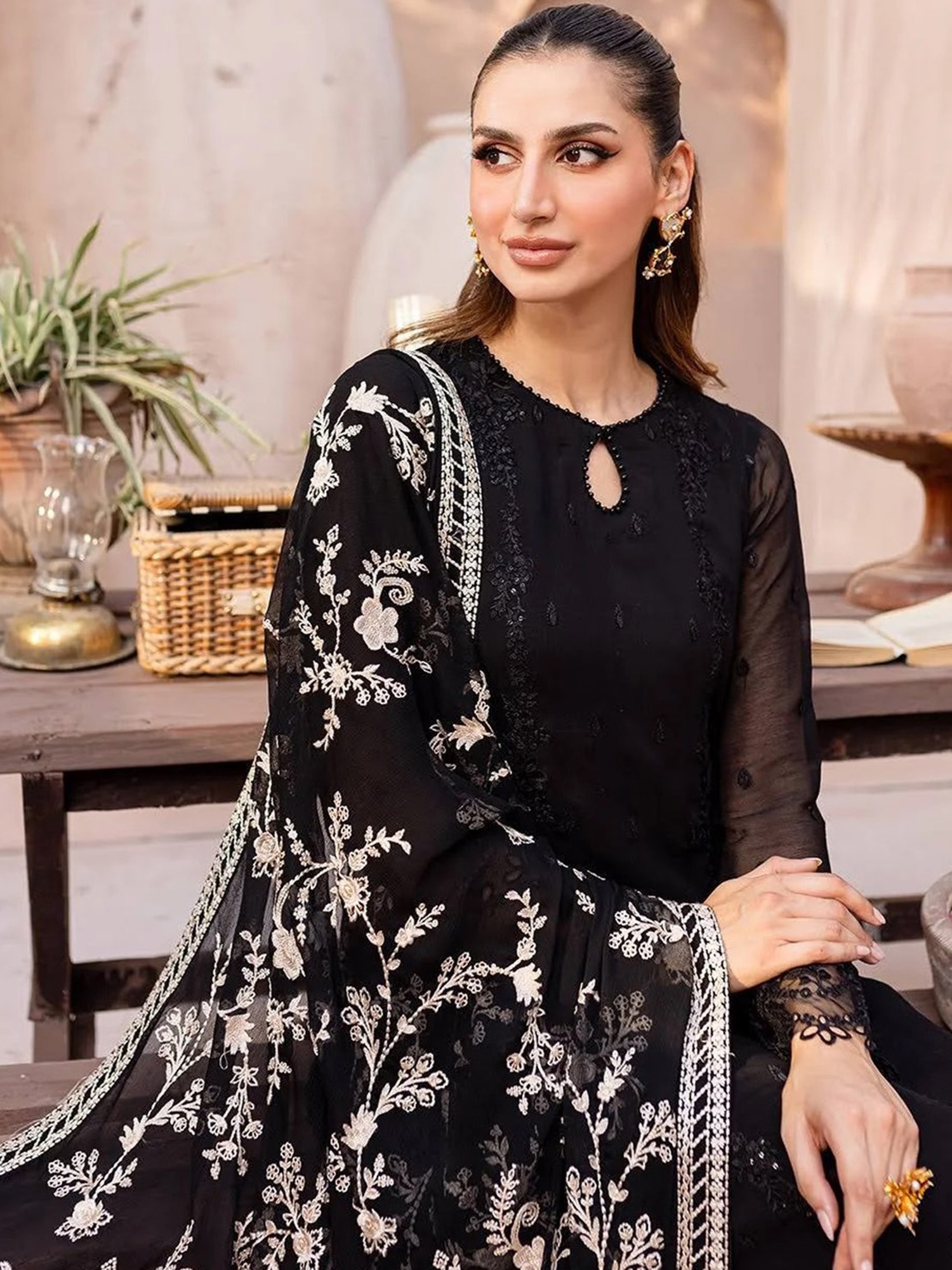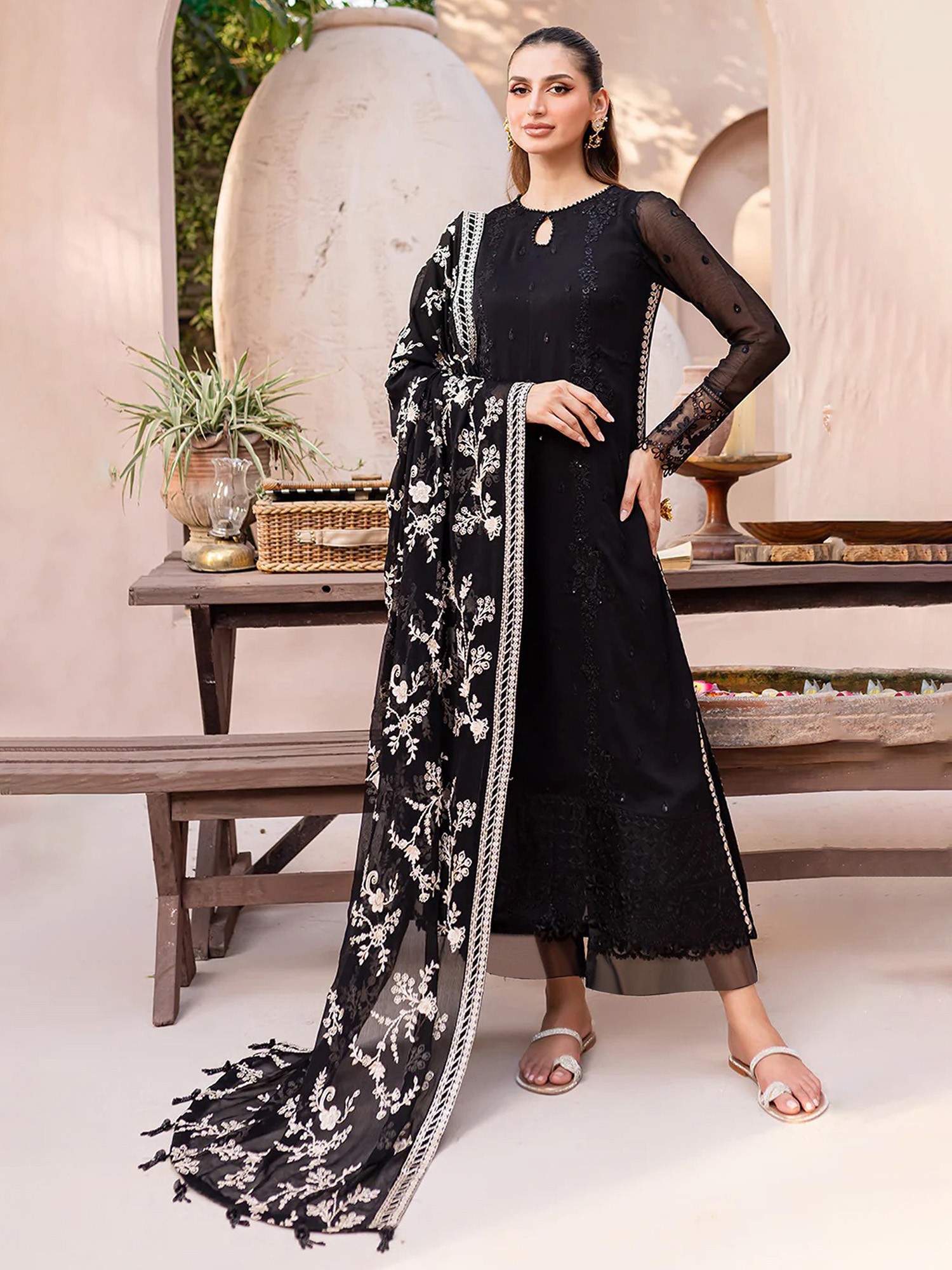 Long Trouser Salwar-Kameez Suit with Heavy Embroidery