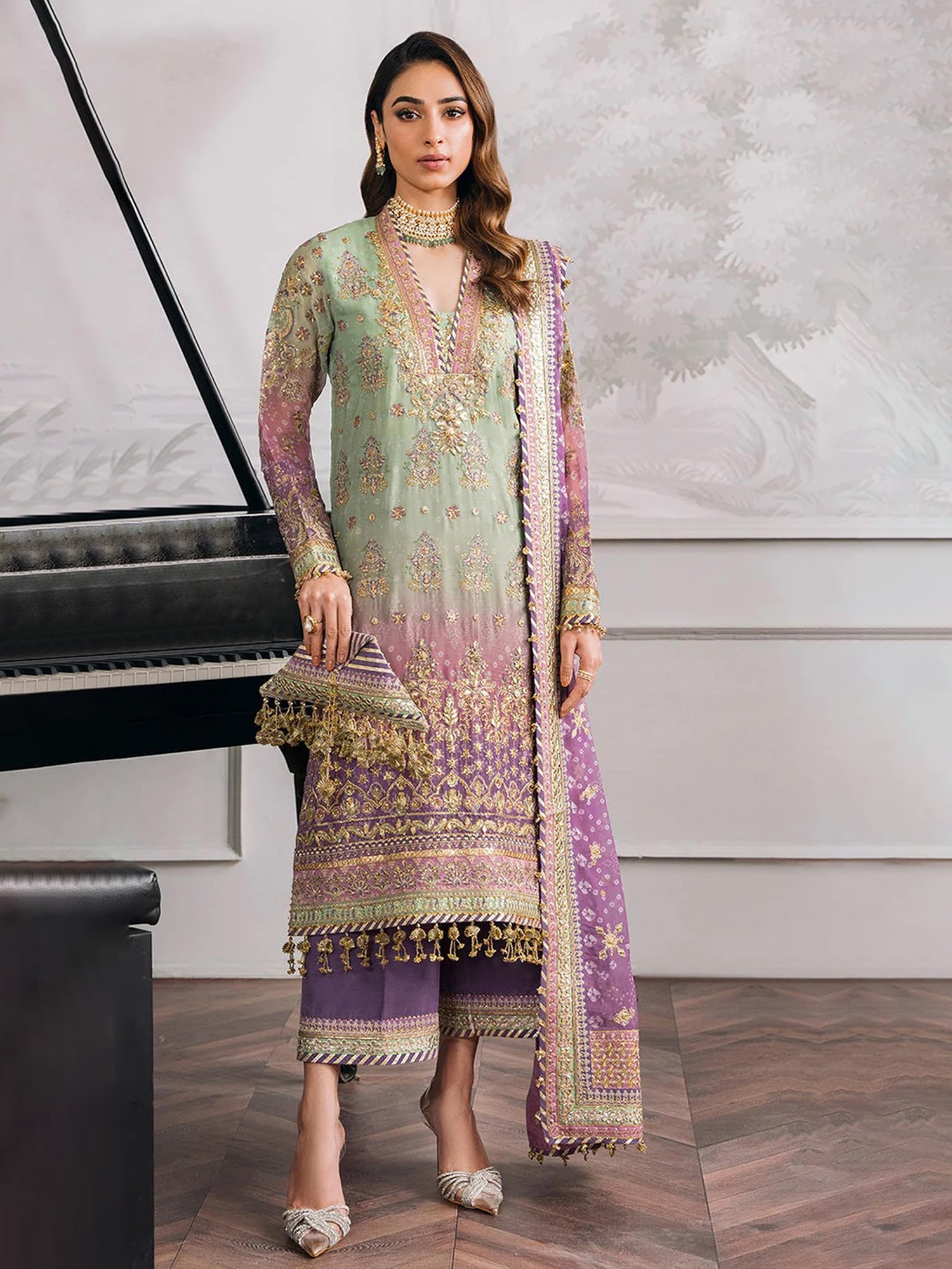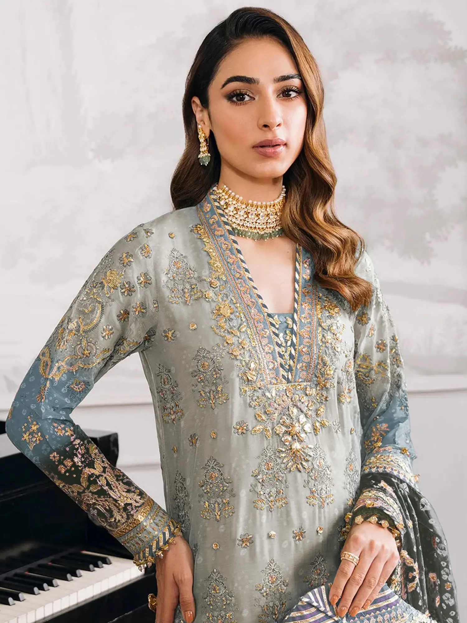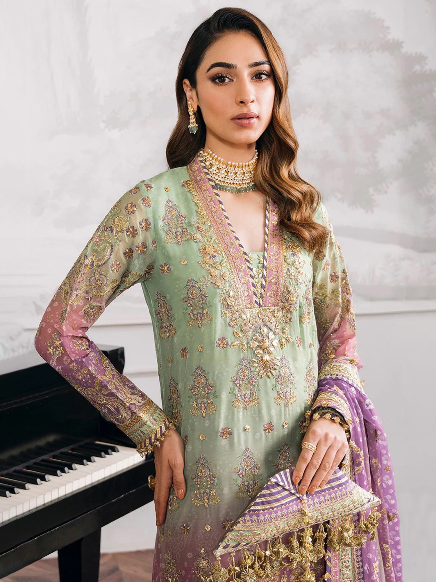 Beryl-Green Organza Embroidery Work Elegant Festive Wear Straight Kurta Set