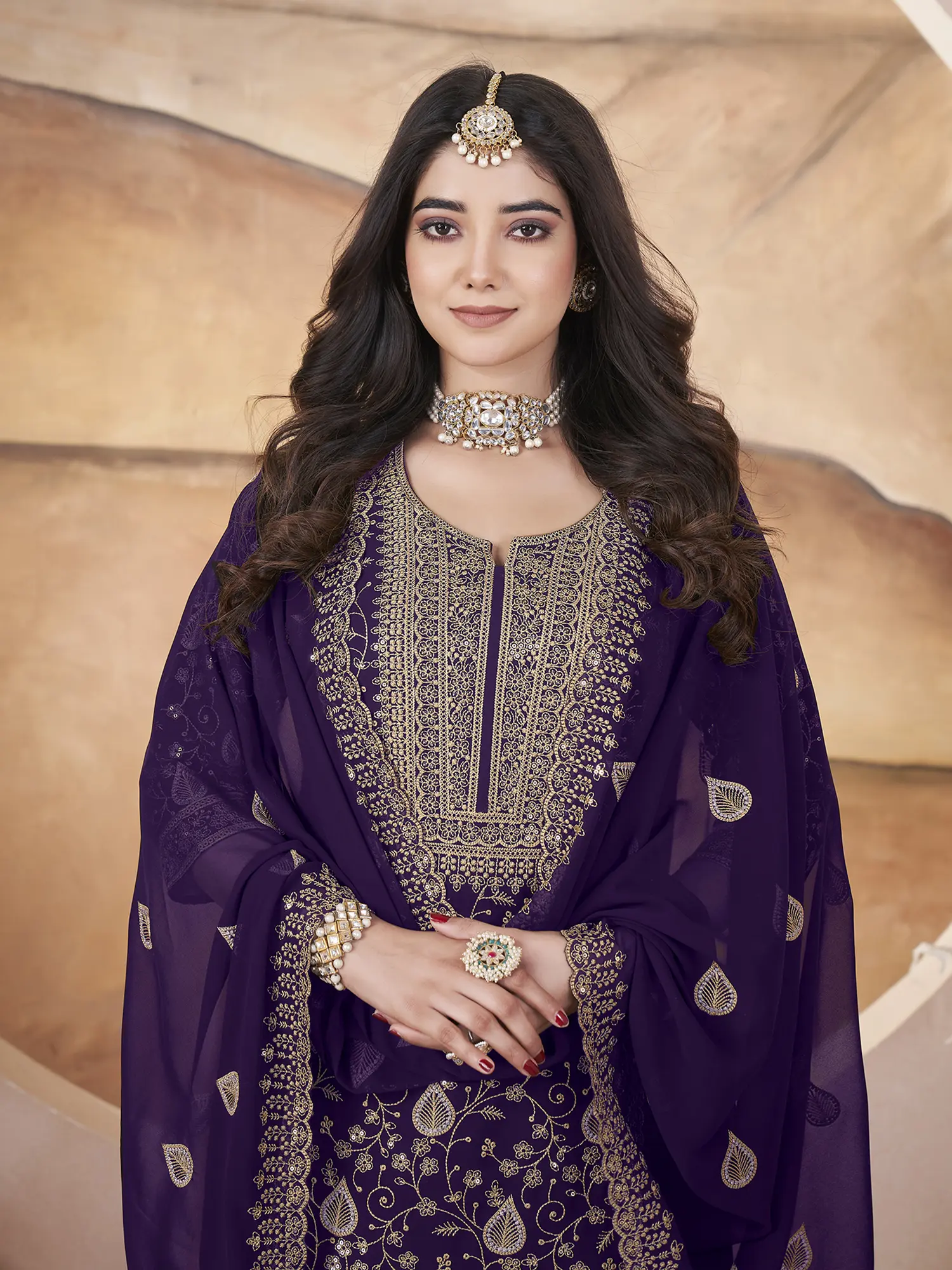 Blackberry Stunning Georgette Thread Embroidery Work Kurta With Palazzo For Casual Occasion
