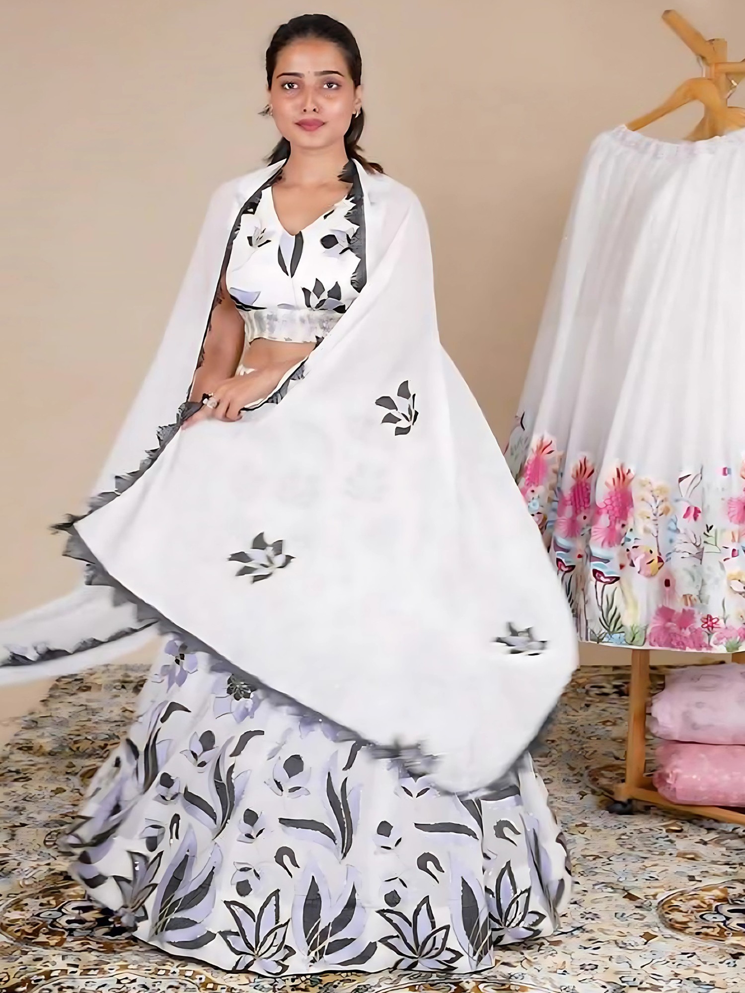 Premium Georgette Embellished Lehenga Choli With Dupatta Multicolour Thread Sequins And Foil Mirror Work