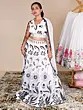 Multicolor Abstract Geometric Print Sleeveless Lehenga Choli with Soft Net Dupatta