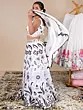 Cream Cotton Multicolor Satin Digital Print Navratri Lehenga Choli With Side Chain - Dori And Green Muslin Dupatta